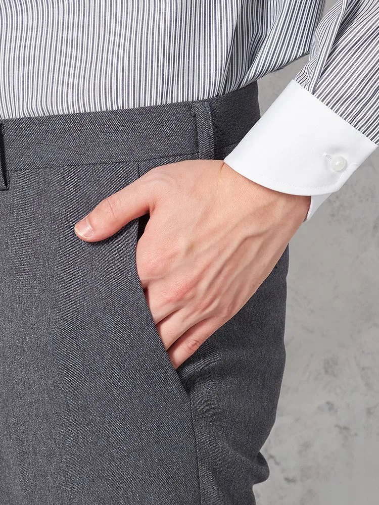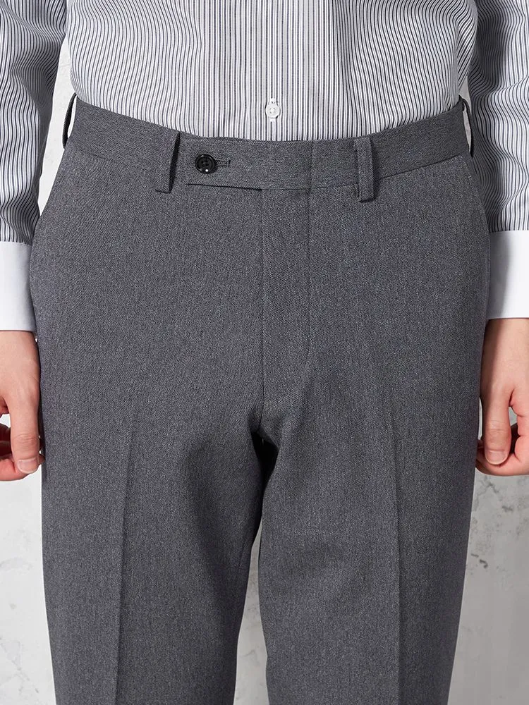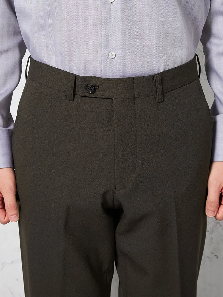 家庭洗濯が可能な股シック付きのノータックパンツです。