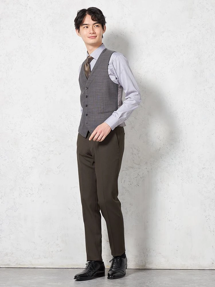 ニュアンスのあるカラーも、着こなしに深みを与えるポイントに。
