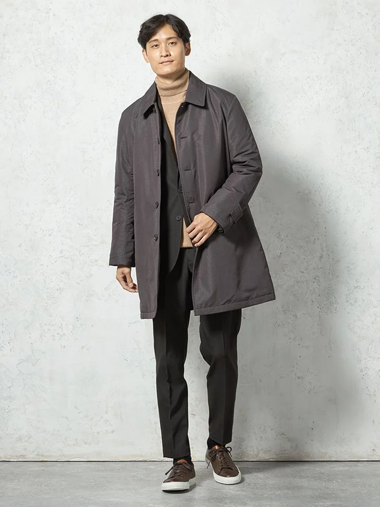 中綿を入れたあたたかい着心地のステンカラーコート。