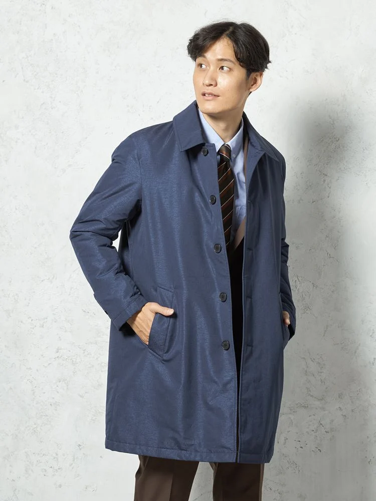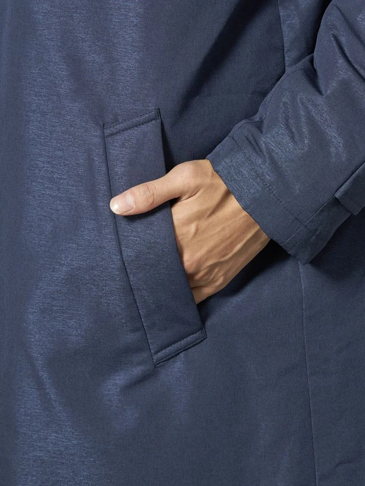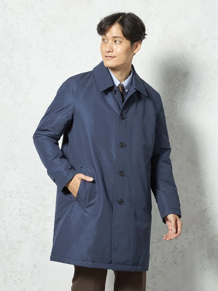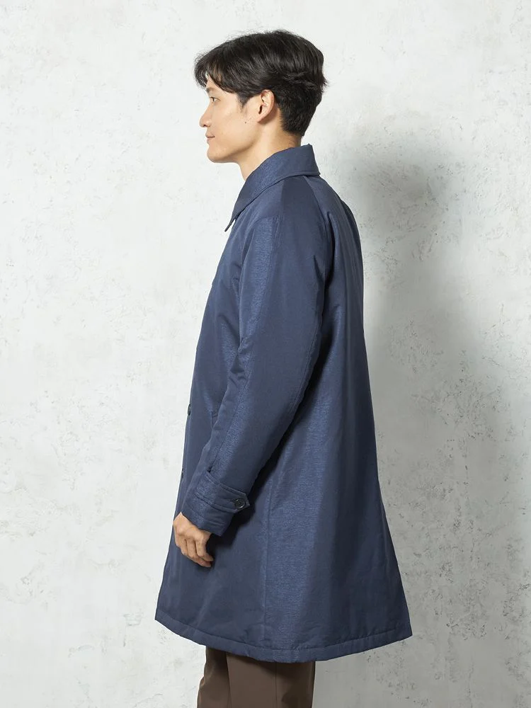 【撥水加工】ステンカラーコート 中綿入り スプリットラグラン仕様 防風 無地 TOKYO RUN 秋冬(ネイビー)
