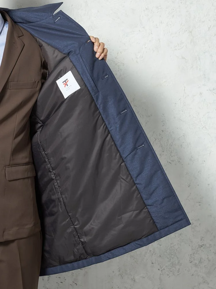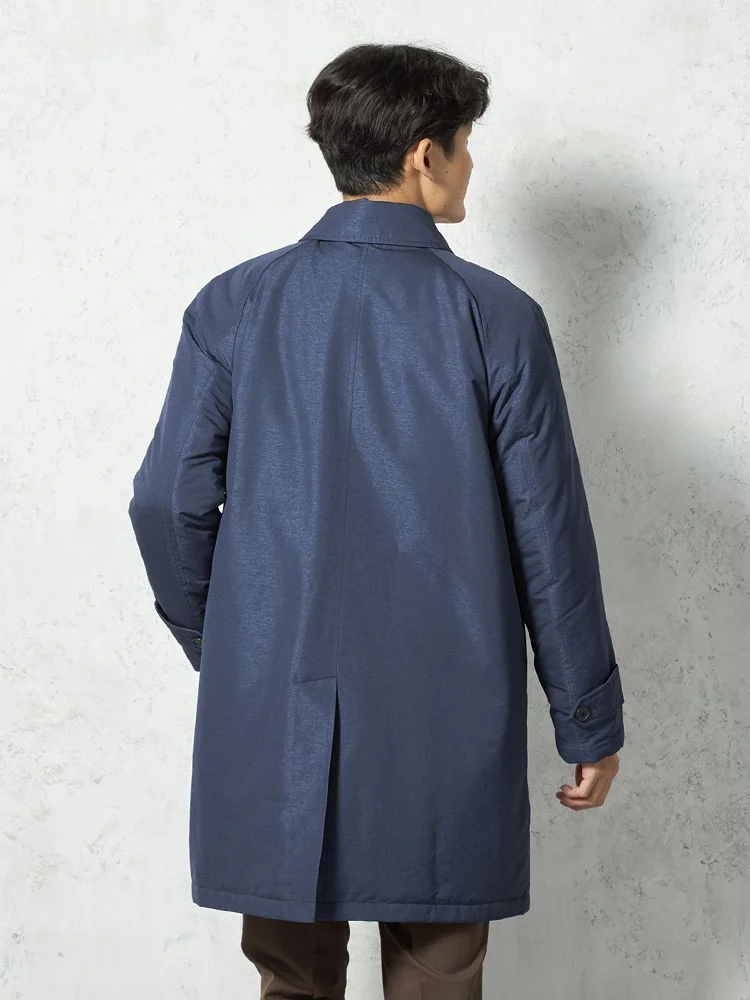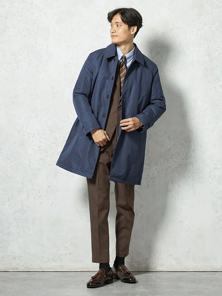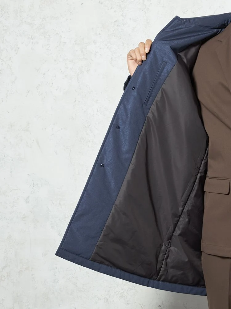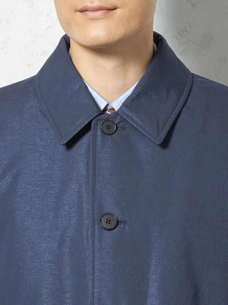 【撥水加工】ステンカラーコート 中綿入り スプリットラグラン仕様 防風 無地 TOKYO RUN 秋冬(ネイビー)
