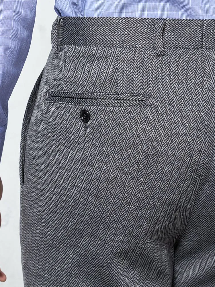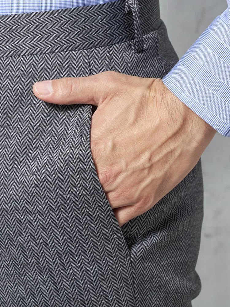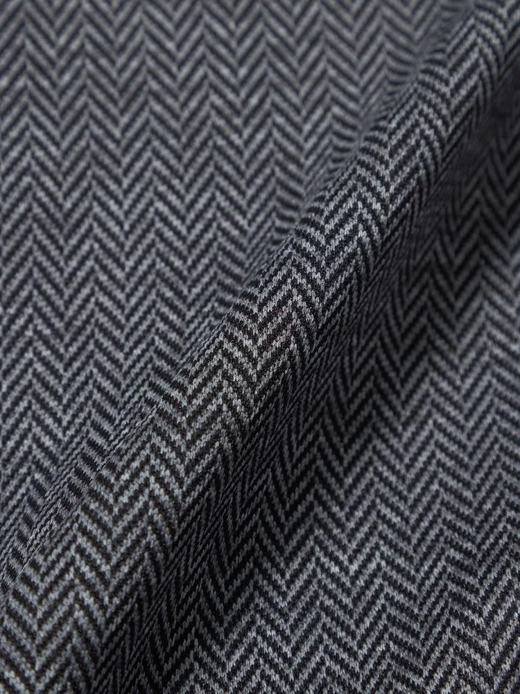 あわせるアイテムを選ばない定番のカラーに、さりげないヘリンボーン柄がおしゃれ心をくすぐるポイントです。