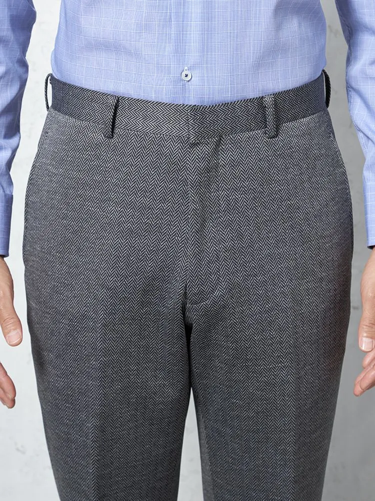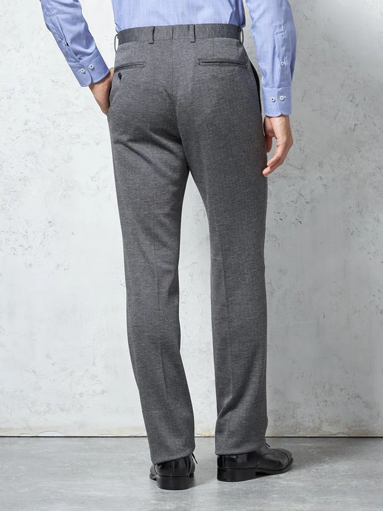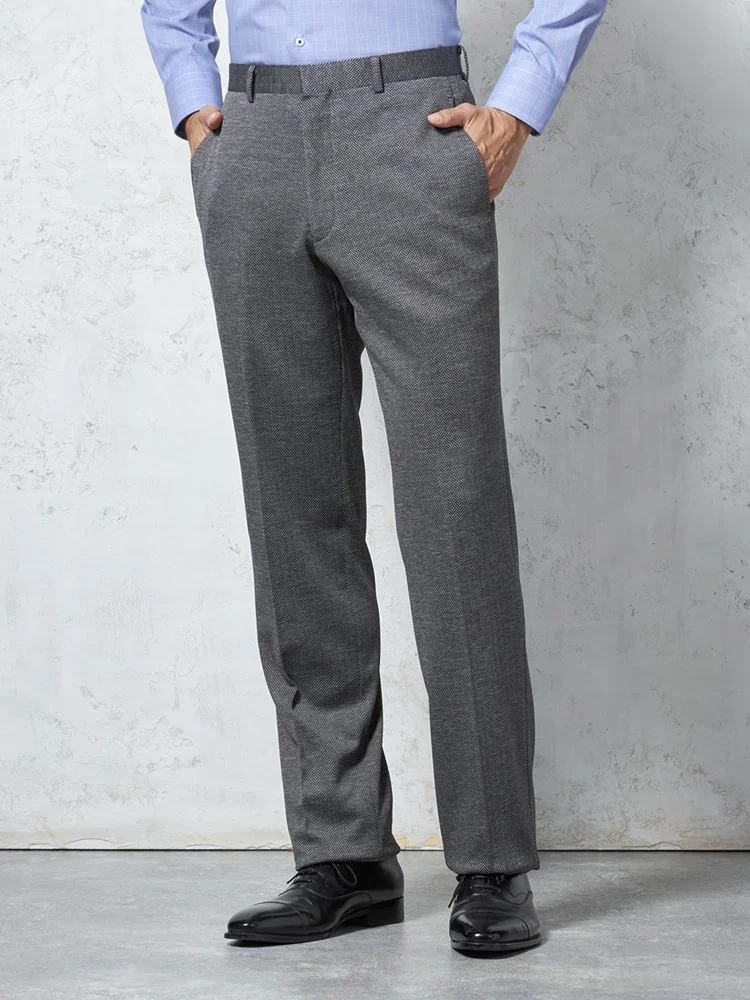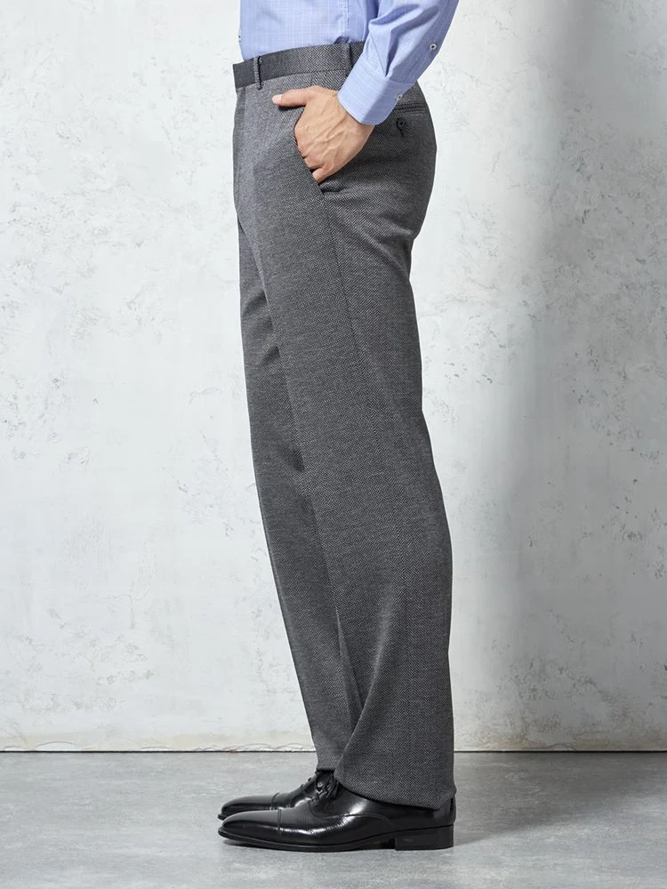 【ウォッシャブル】パンツ ノータック ファイテン ニット素材 ヘリンボン PHITEN 秋冬(M.グレー)