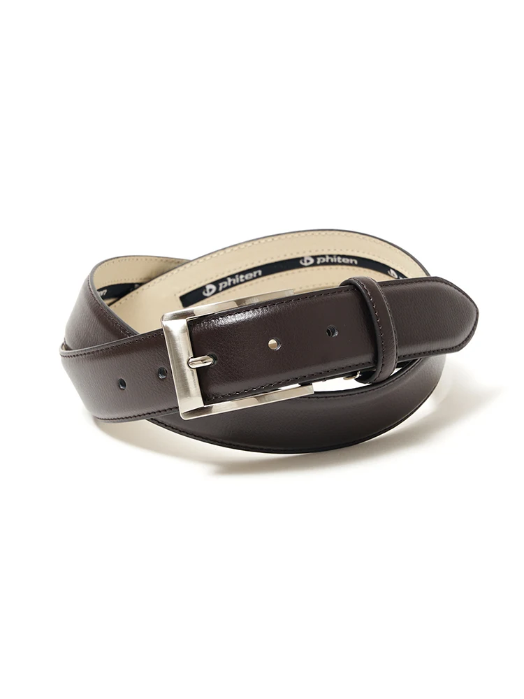 【牛革】メンズベルト ファイテン アクアチタン含浸 リラックス PHITEN 通年(D.ブラウン)