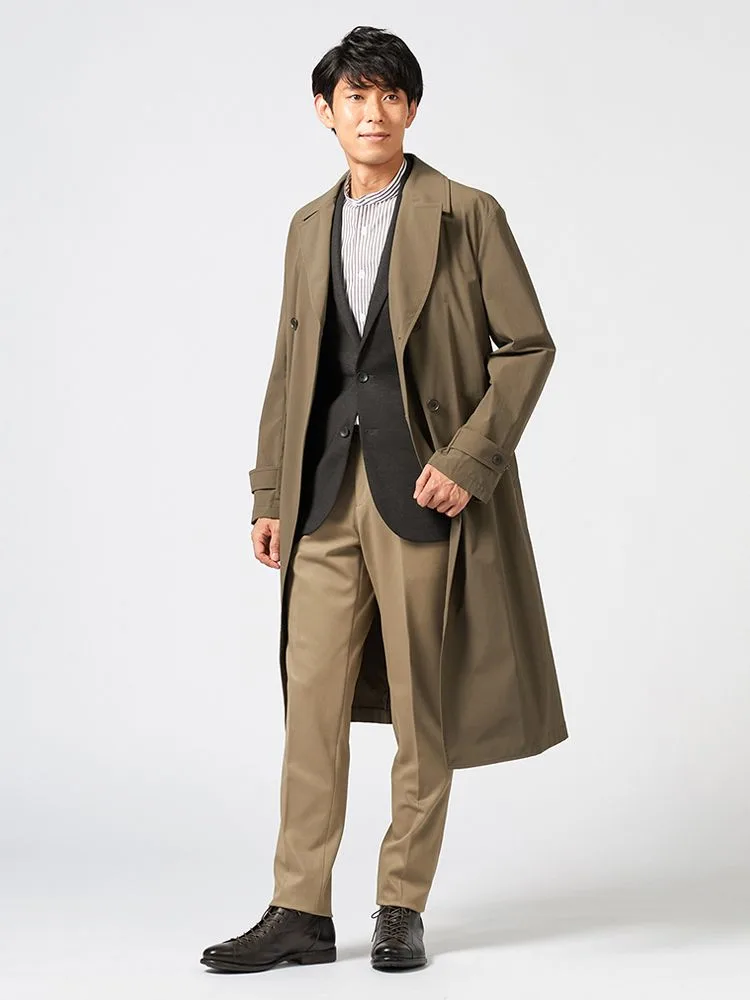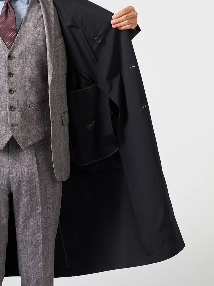 【NERO】セミトレンチコートライナー付コートヘリンボン撥水加工ストレッチ秋冬【スリムデザイン】