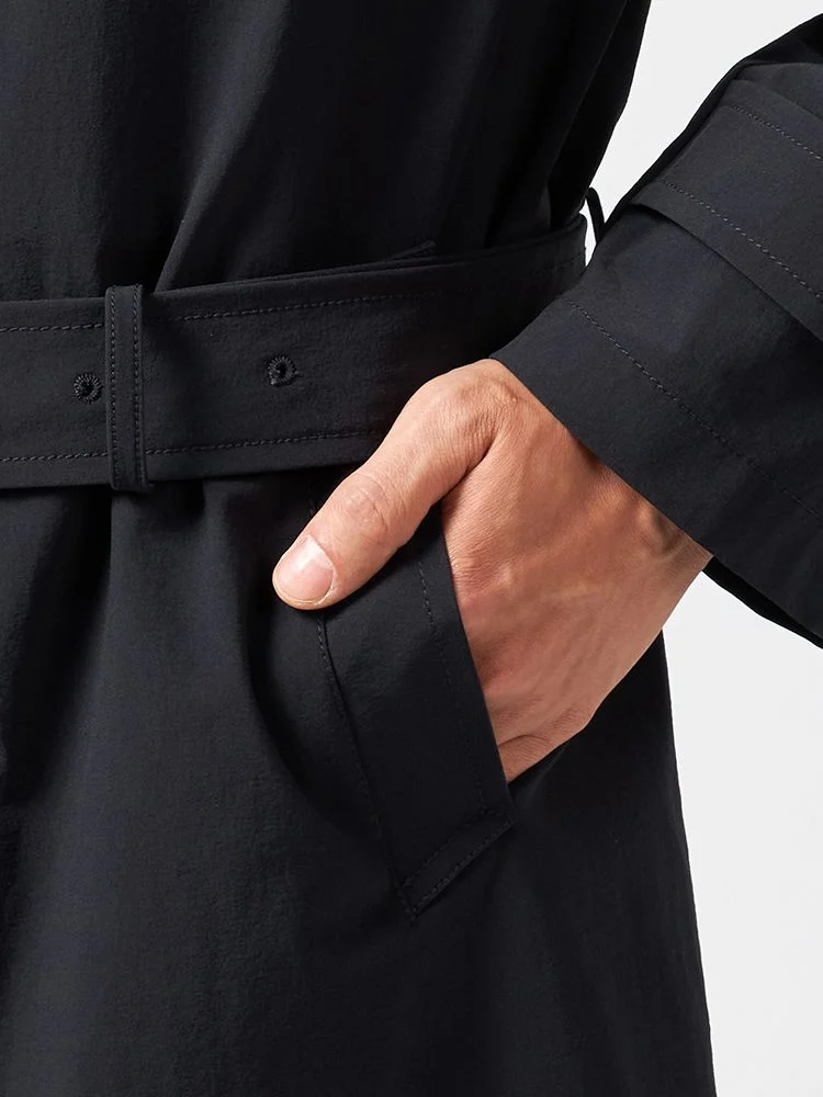 【パッカブル】コートロング軽量撥水ストレッチ無地nero秋冬【スリムデザイン】