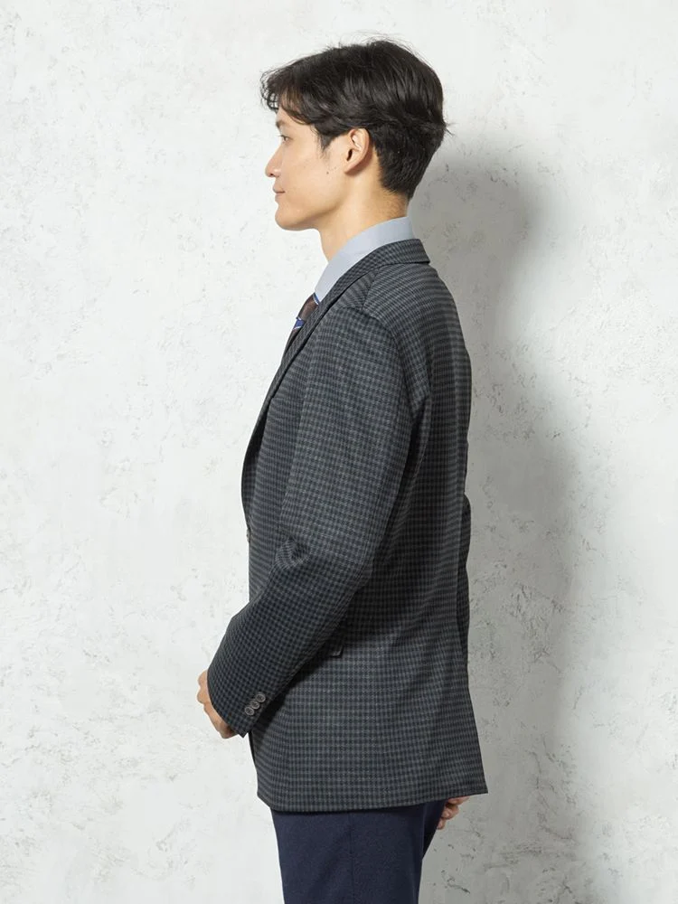 【軽量】プリントニットジャケット2つボタンウォッシャブルストレッチグレー小格子【i-Jacket-アイジャケット-】秋冬
