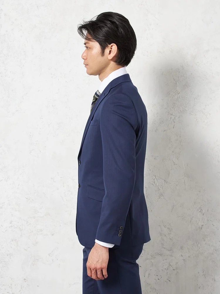 切り込みが1本のセンターベントデザインです。細身でスッキリとしたシルエットが特徴で、快適な着心地を提供します