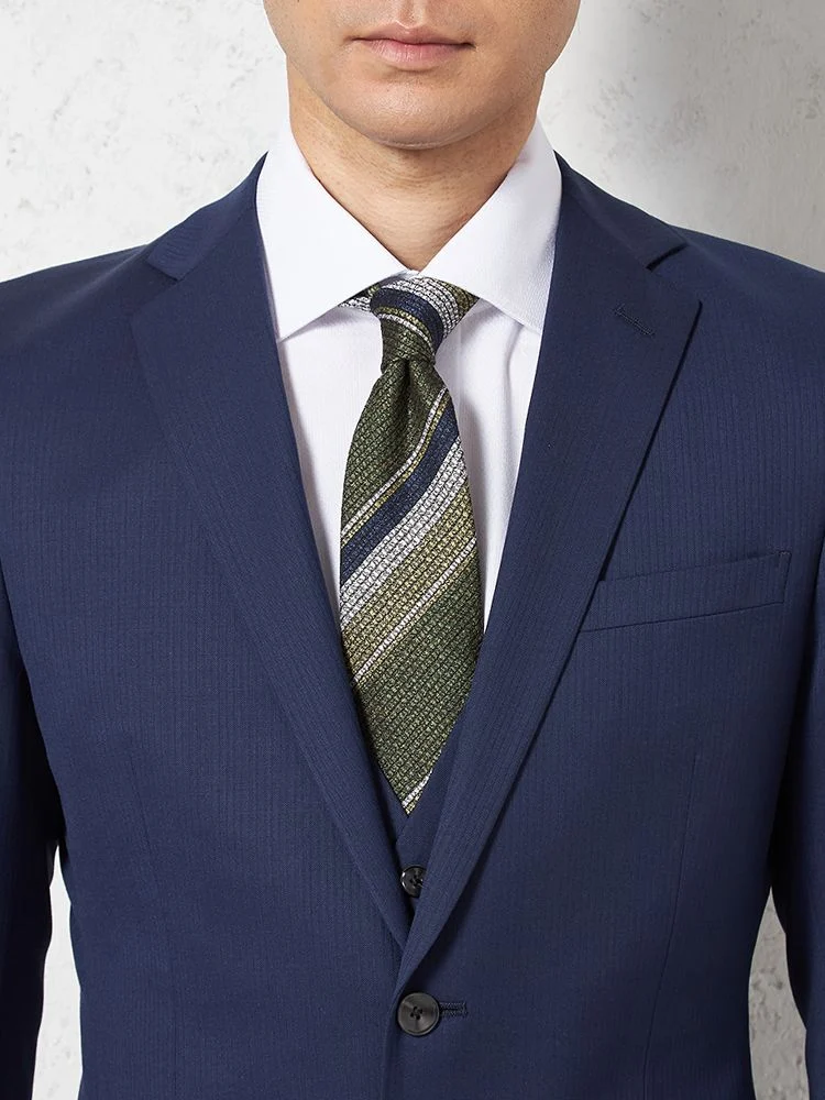 【パンツウォッシャブル】スリーピーススーツ 2つボタン ビエラスティコ ライトネイビー シャドウストライプ nero 通年【スリムデザイン】