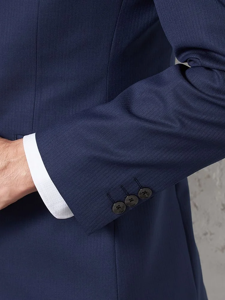 2つボタンジャケットは内側の台場仕立てにより型崩れを防止。