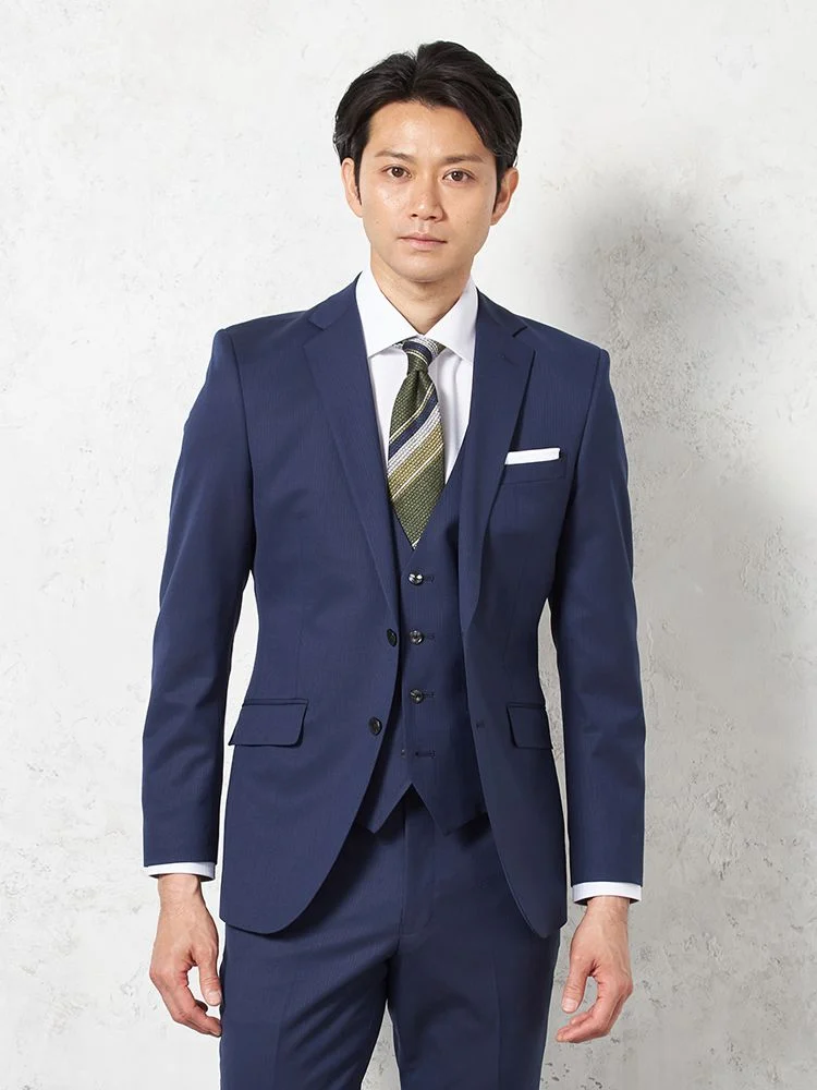 【パンツウォッシャブル】スリーピーススーツ2つボタンストレッチノータック無地S&MBLUELABEL
