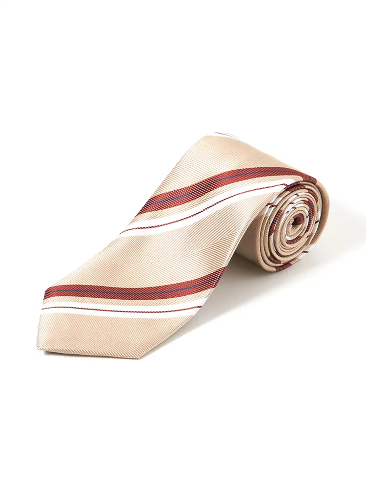 【シルク100%】ネクタイ 日本製 ハイクオリティネクタイ ストライプ STOVEL&MASON 春夏(ベージュ)