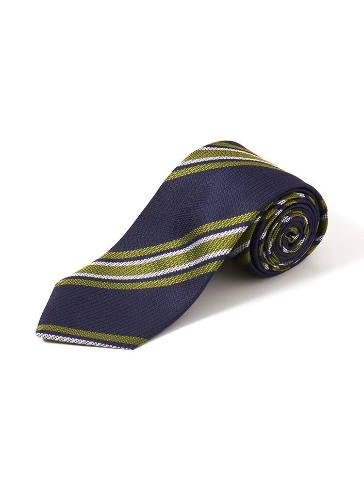 【シルク混】ネクタイレギュラーリクルートタイネイビーストライプnero通年