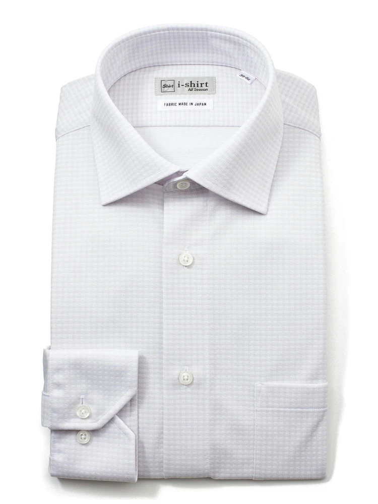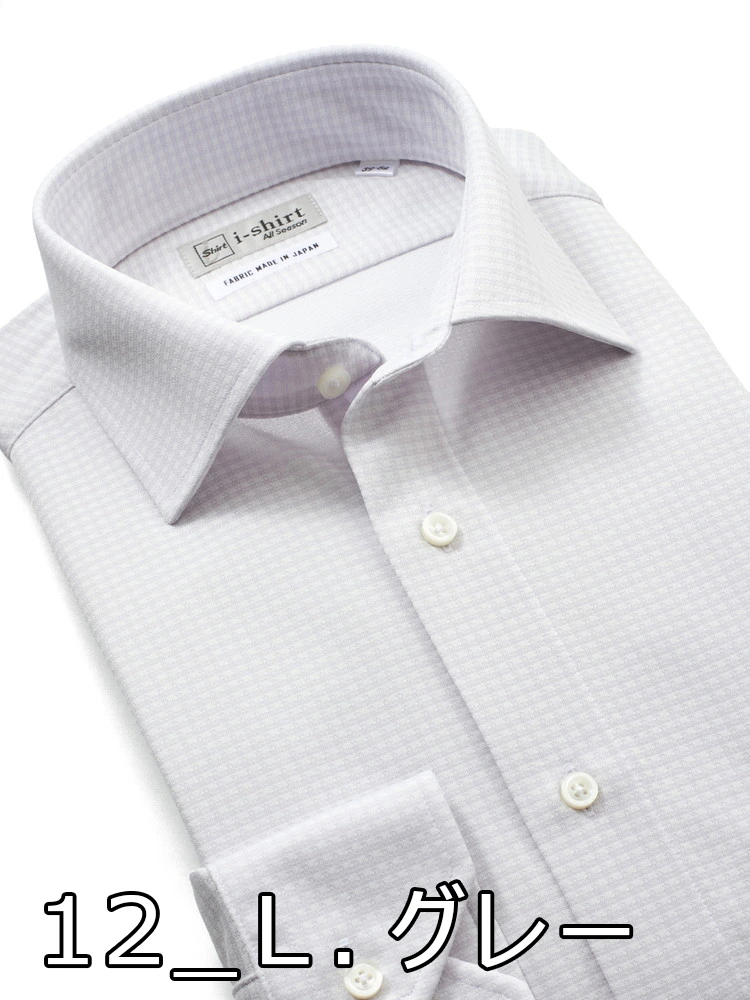 【ECOi-shirt】完全ノーアイロン長袖セミワイドエコセンサー織柄無地刺し子ワイシャツ通年