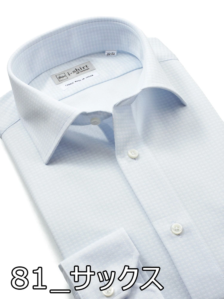 【完全ノーアイロン】長袖 アイシャツ セミワイド ギンガムチェック ワイシャツ i-shirt 通年(サックス)
