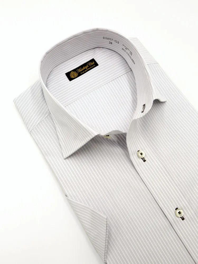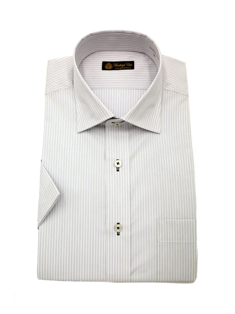 【形態安定】半袖 ワイシャツ セミワイド ストライプ ハントレークラブ 春夏(C.グレー)
