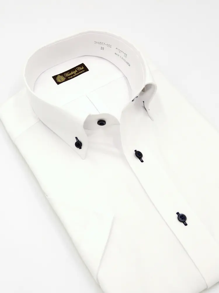 【形態安定】半袖 ワイシャツ ボタンダウン 白ドビー 織柄無地 ハントレークラブ 春夏