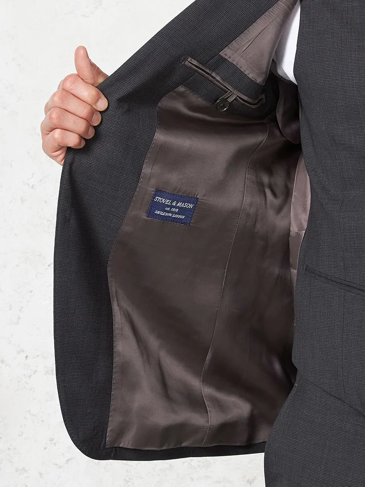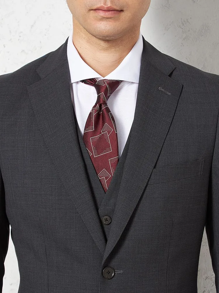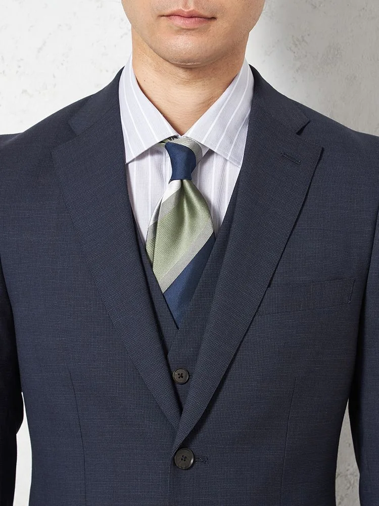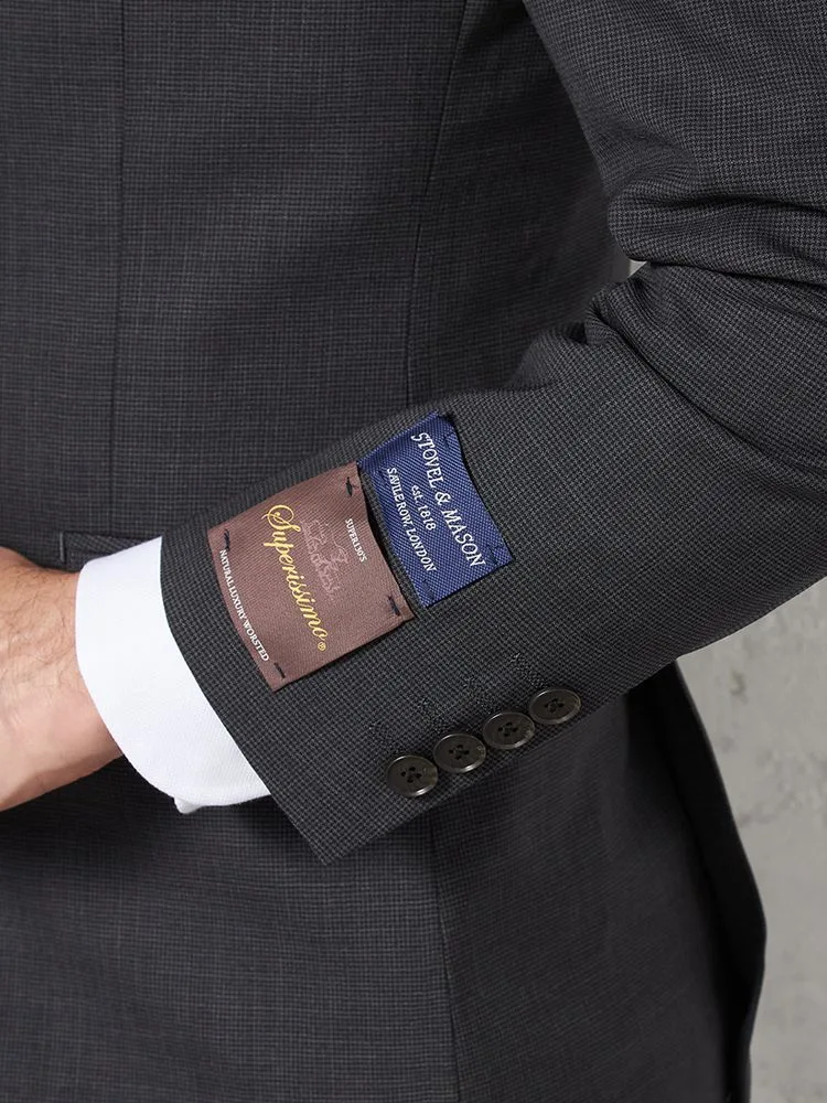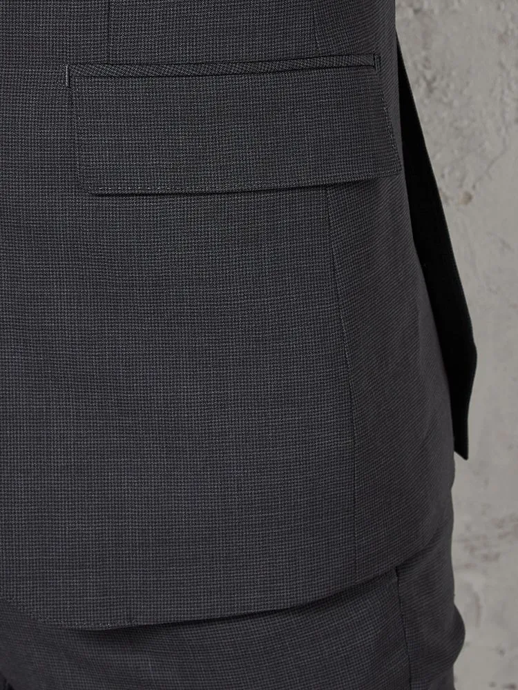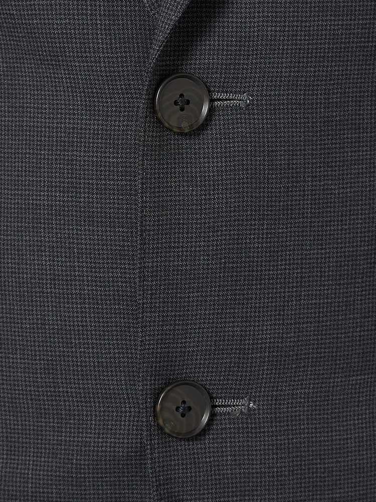 無地に近い細やかなハウンドトゥースチェックの3ピーススーツです。