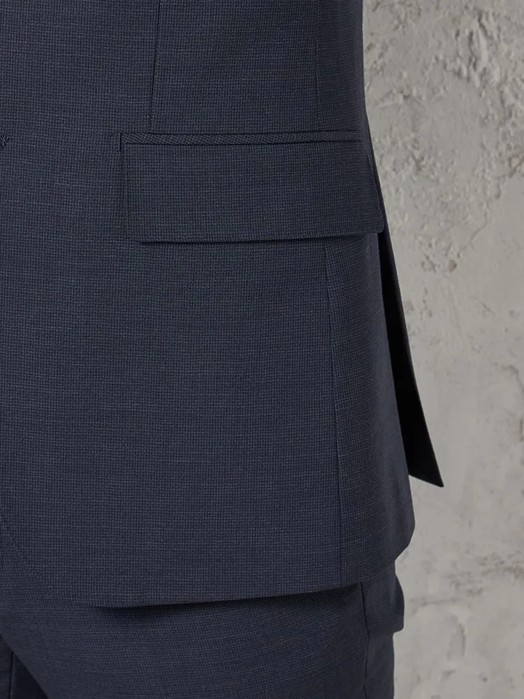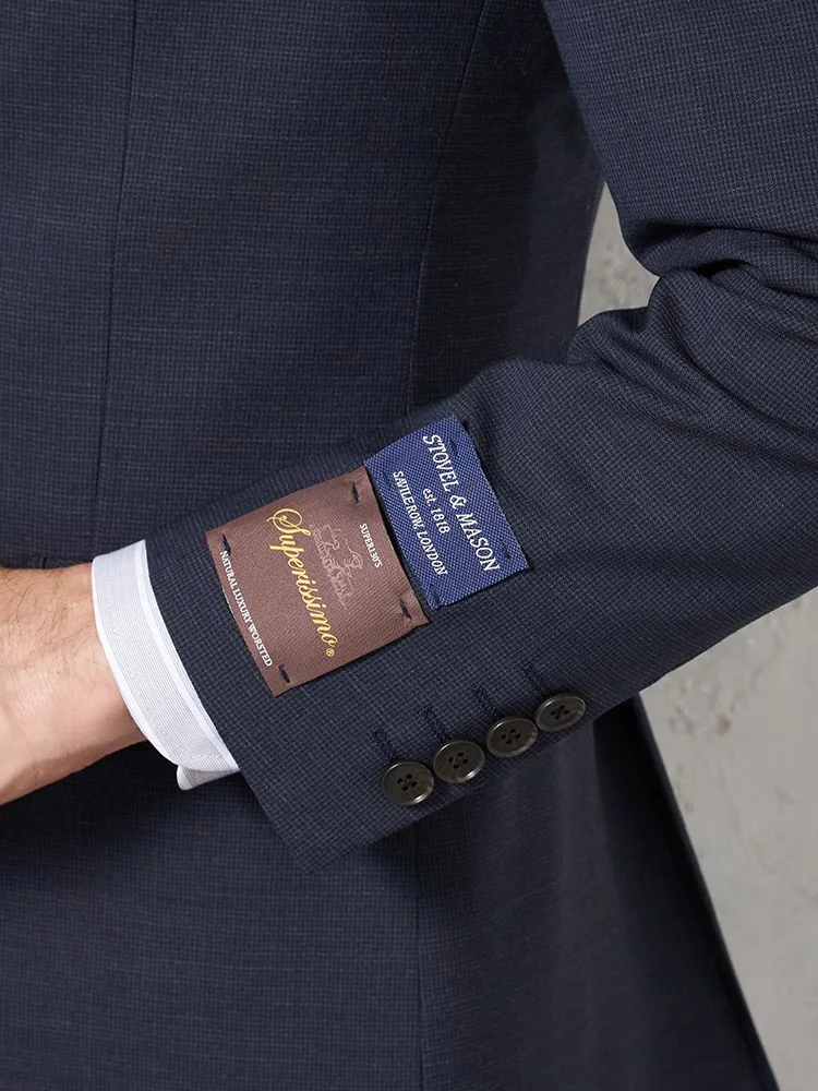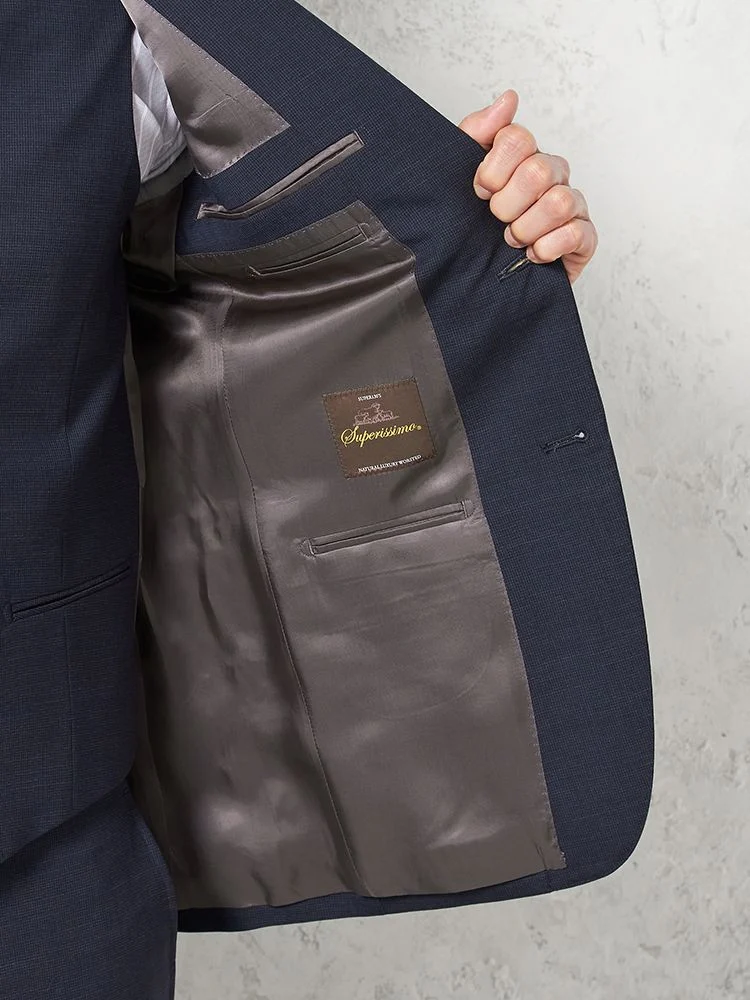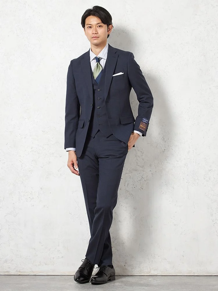 【ウール100%】スリーピーススーツ 2つボタン SUPER130s 裏地キュプラ 千鳥格子 S&M BLUE LABEL(ネイビー)