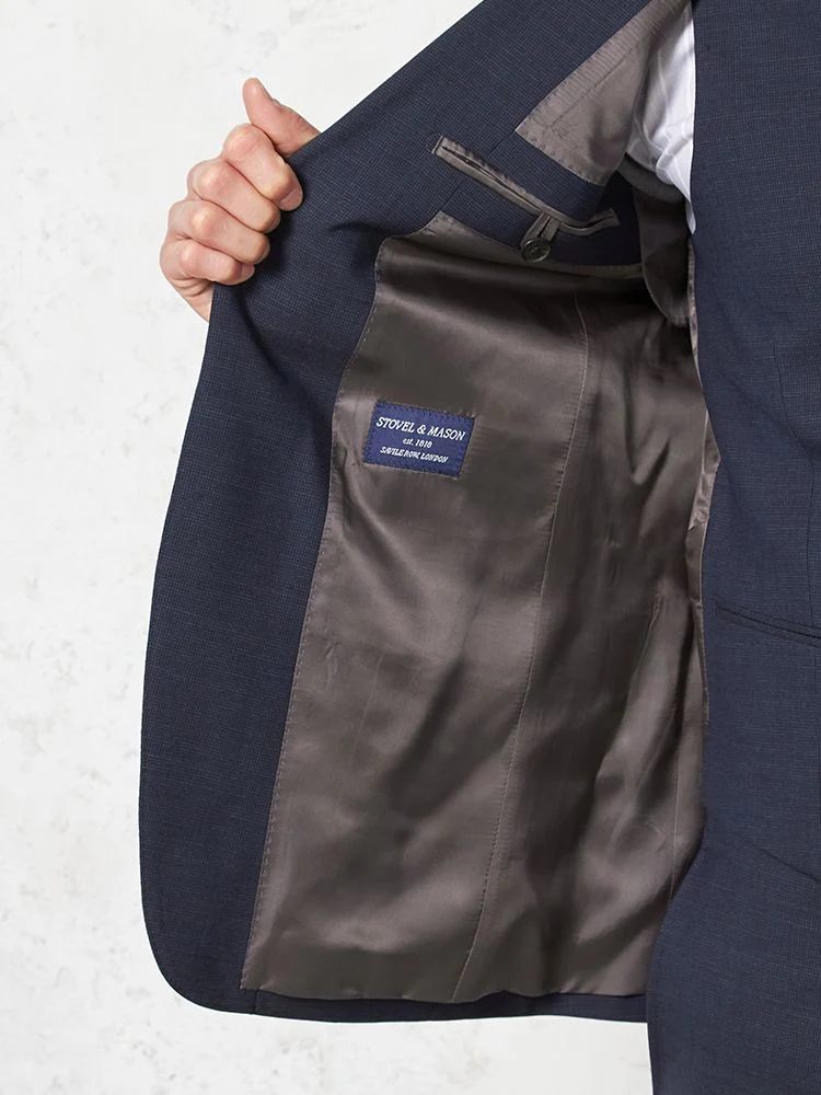 ジャケットはラペル毛芯仕様で立体感を演出し、AMFステッチを施しました。