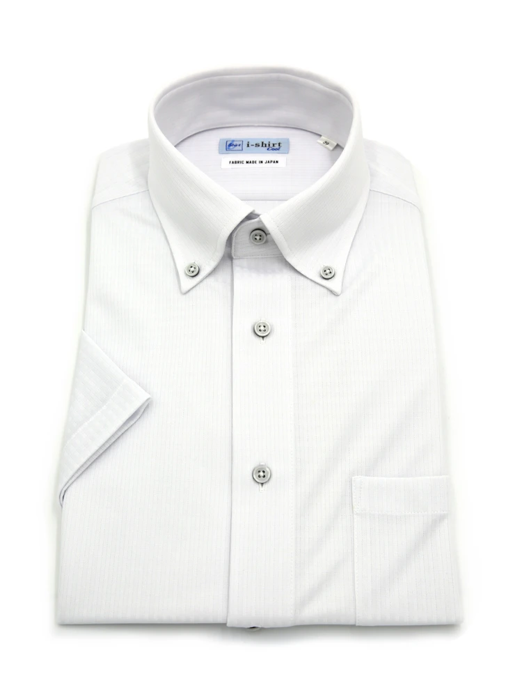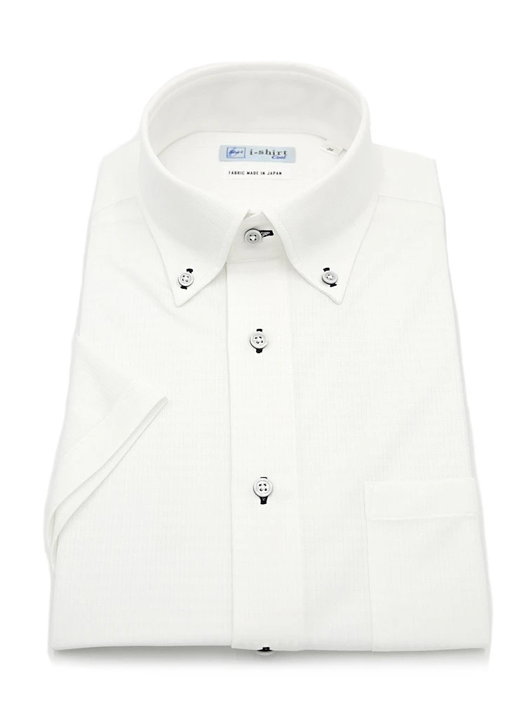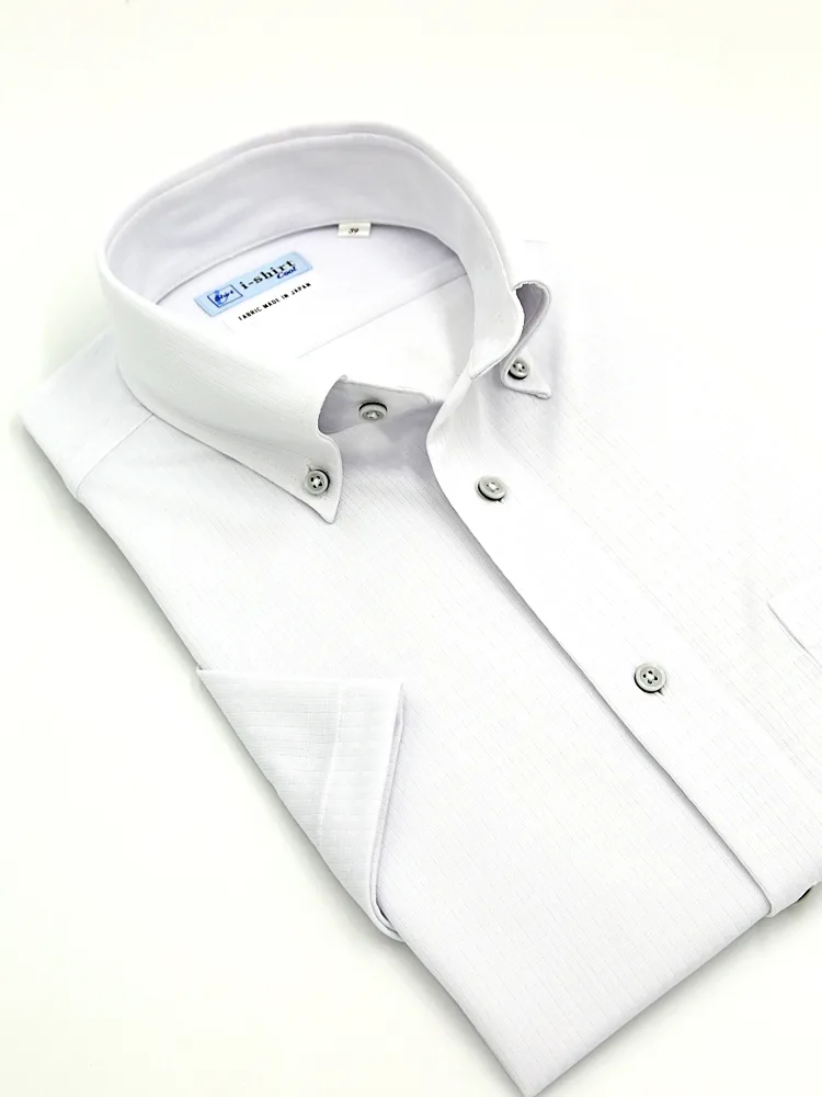【完全ノーアイロン】半袖アイシャツボタンダウン白無地冷感UV加工ワイシャツi-shirt春夏