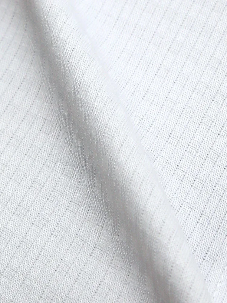 こだわりの日本製生地はソフトなポリエステルニットで、スポーツウェア等にも使われる高機能素材。体の動きに合わせて生地が伸び縮みする高いストレッチ性が特徴で、動作時の負荷が少なく着用ストレスも軽減します。