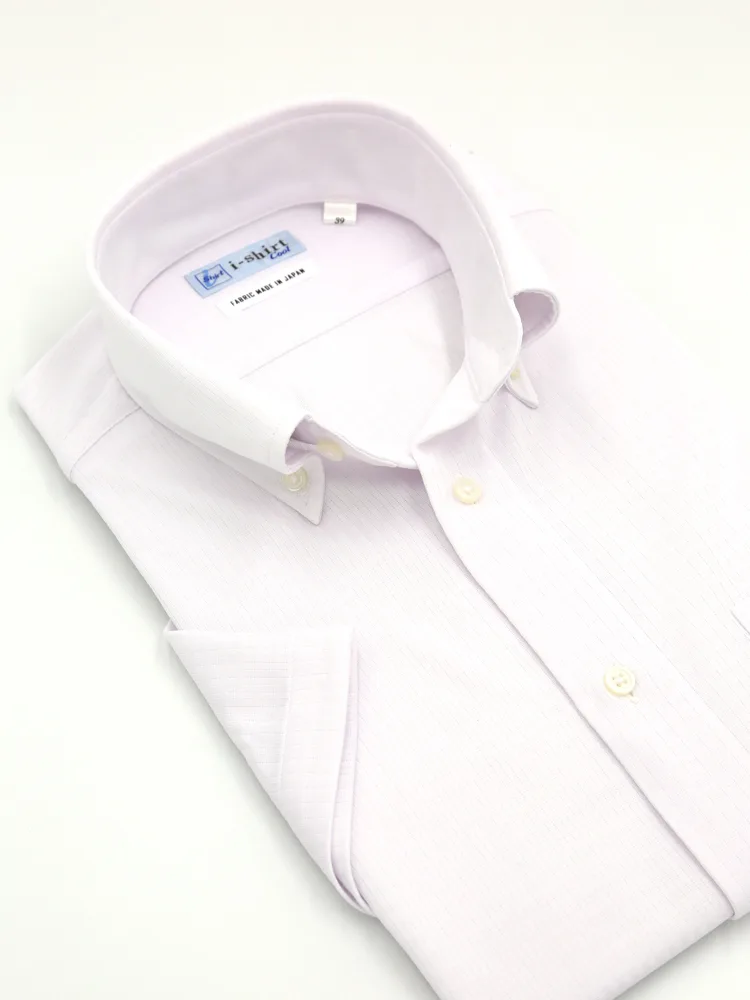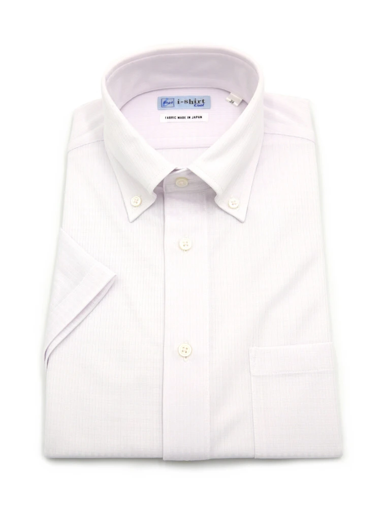 【完全ノーアイロン】半袖 アイシャツ ボタンダウン【バイオセンサークール生地使用】高通気 冷感 織柄無地 ワイシャツ i-shirt 春夏(ピンク系)