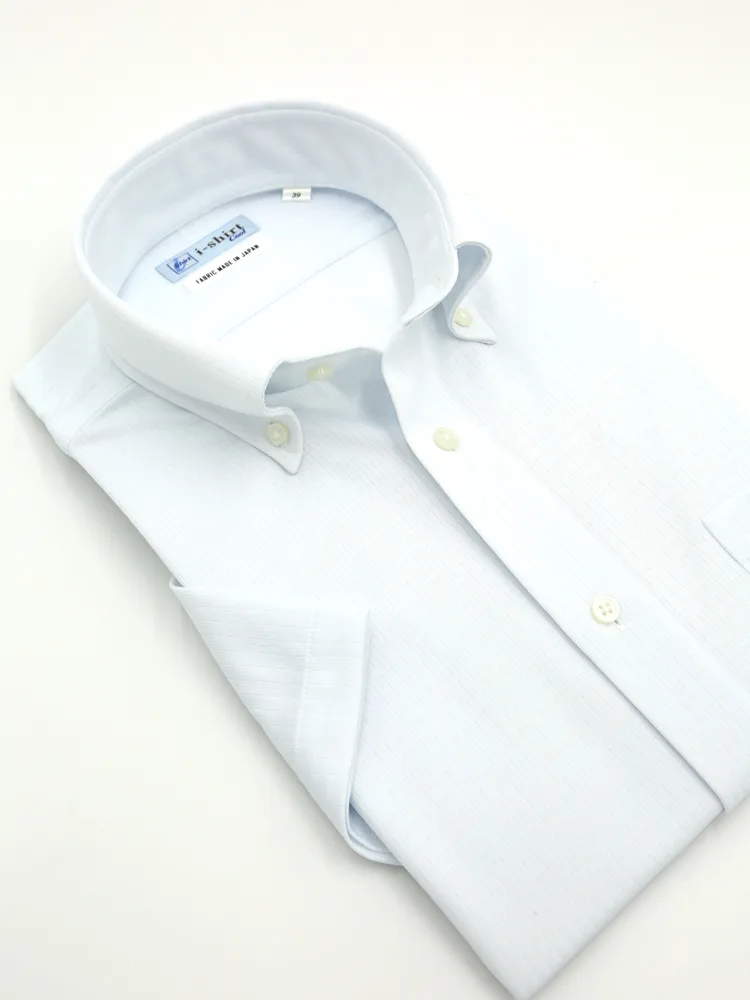 【即納】WEB限定【完全ノーアイロン】半袖アイシャツボタンダウンストレッチ織柄無地i-shirt春夏