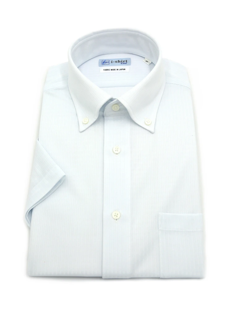 【完全ノーアイロン】半袖アイシャツボタンダウン【バイオセンサークール生地使用】高通気冷感ストライプワイシャツi-shirt春夏