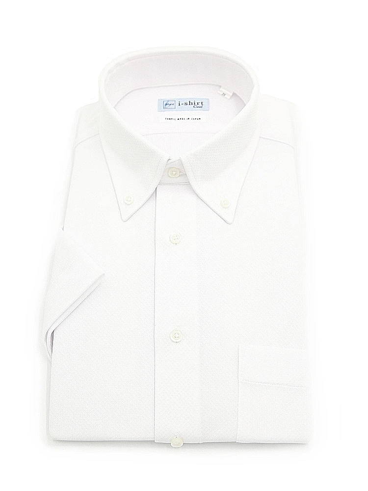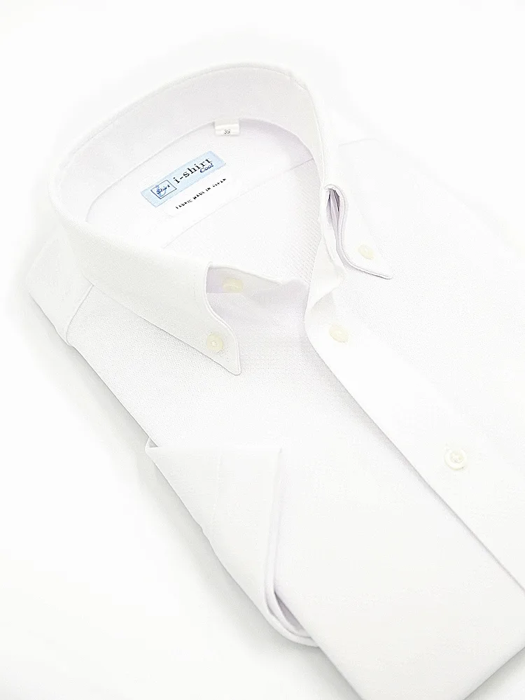 【完全ノーアイロン】半袖アイシャツボタンダウン【バイオセンサークール生地使用】高通気冷感織柄無地ワイシャツi-shirt春夏