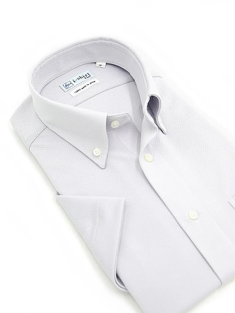 【完全ノーアイロン】半袖アイシャツボタンダウン【DRYAIR生地使用】通気性ダイヤ柄ワイシャツi-shirt春夏