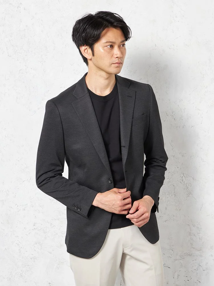 【i-Jacket-アイジャケット-】ジャケット2つボタン【ストレッチ】カルキュロニット素材ドライタッチウォッシャブルnero【スリムデザイン】