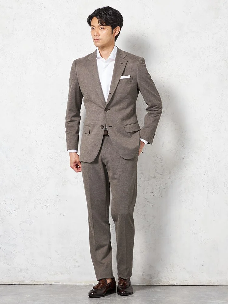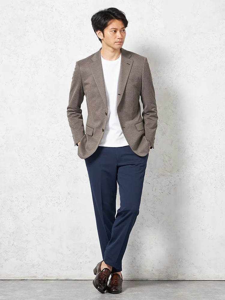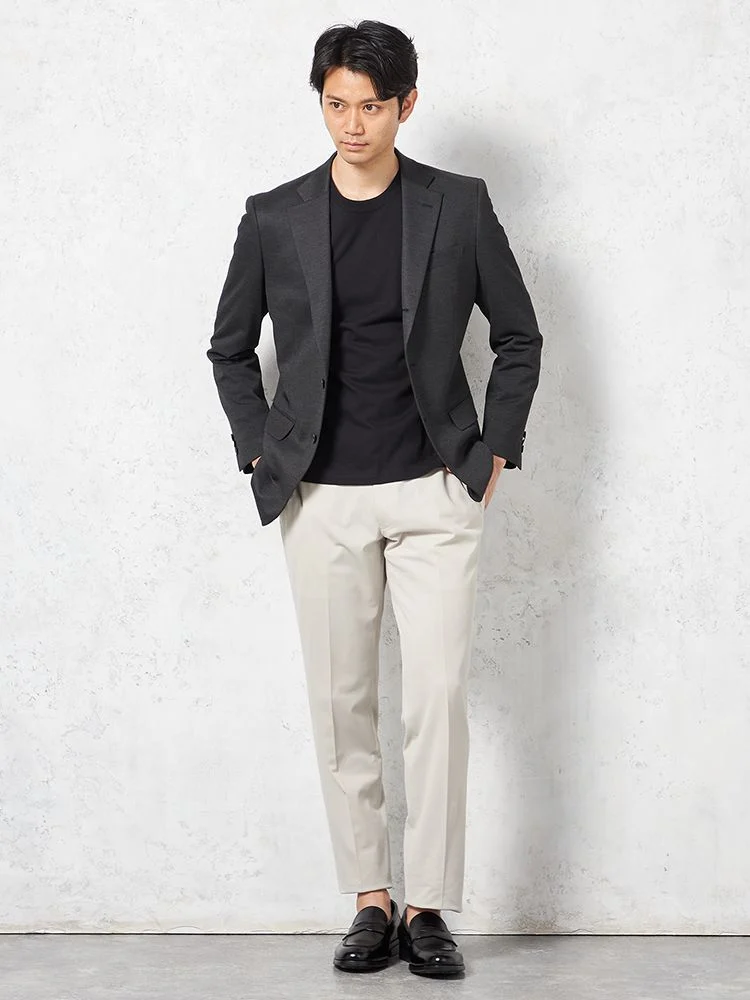 上下を揃えれば、ベーシックなスーツスタイルとしても着用できます。