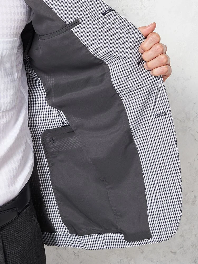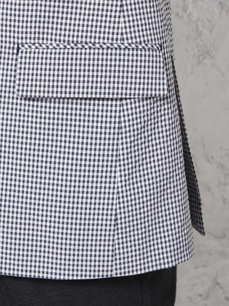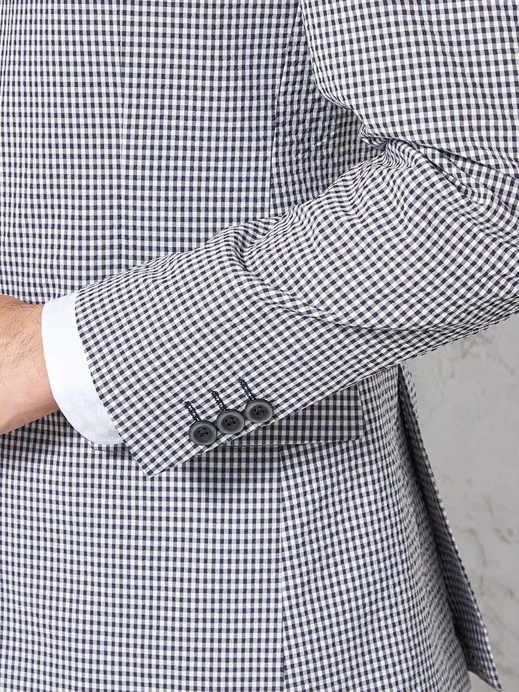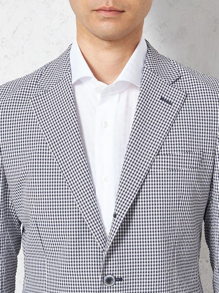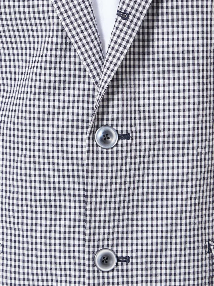 【ウォッシャブル】ジャケット 段返り3つボタン ストレッチサッカー素材 軽量 マイクロチェック 春夏