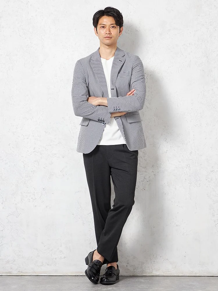 【ウォッシャブル】ジャケット2つボタン【i-Jacket-アイジャケット-】ストレッチ軽量イタリアンチェック柄春夏