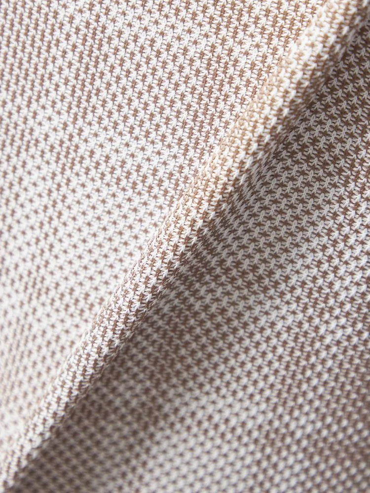 明るめのベージュトーンのチェック柄で無地にはないデザイン性をプラス、オフィスはもちろん休日のカジュアルスタイルにもお使いいただけます。