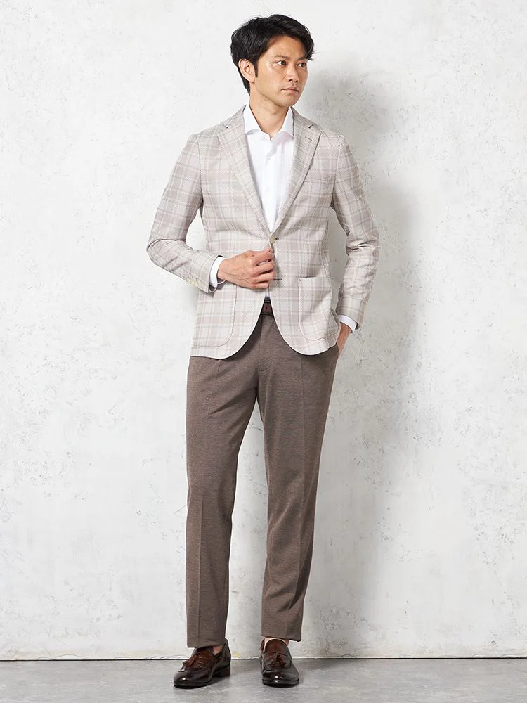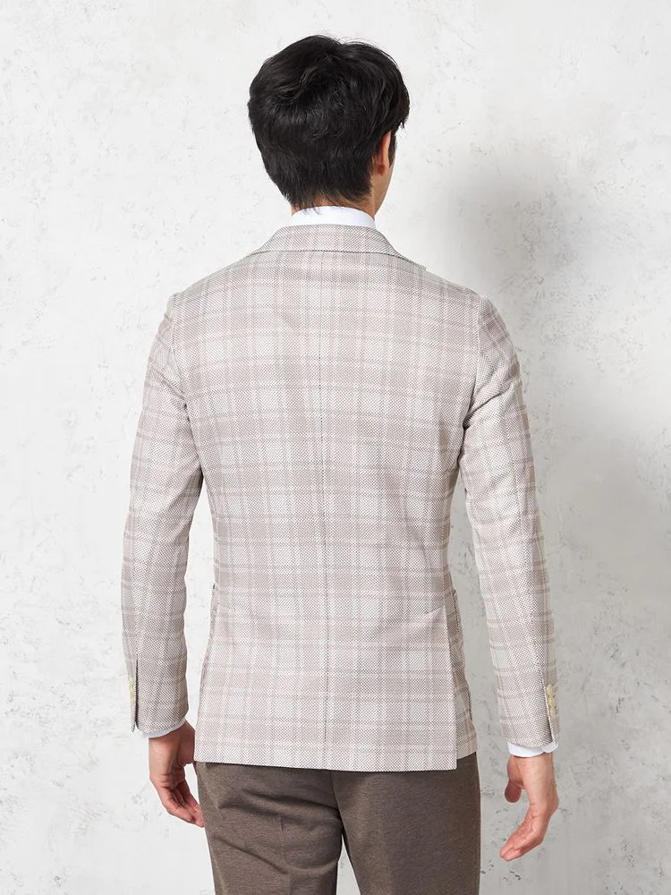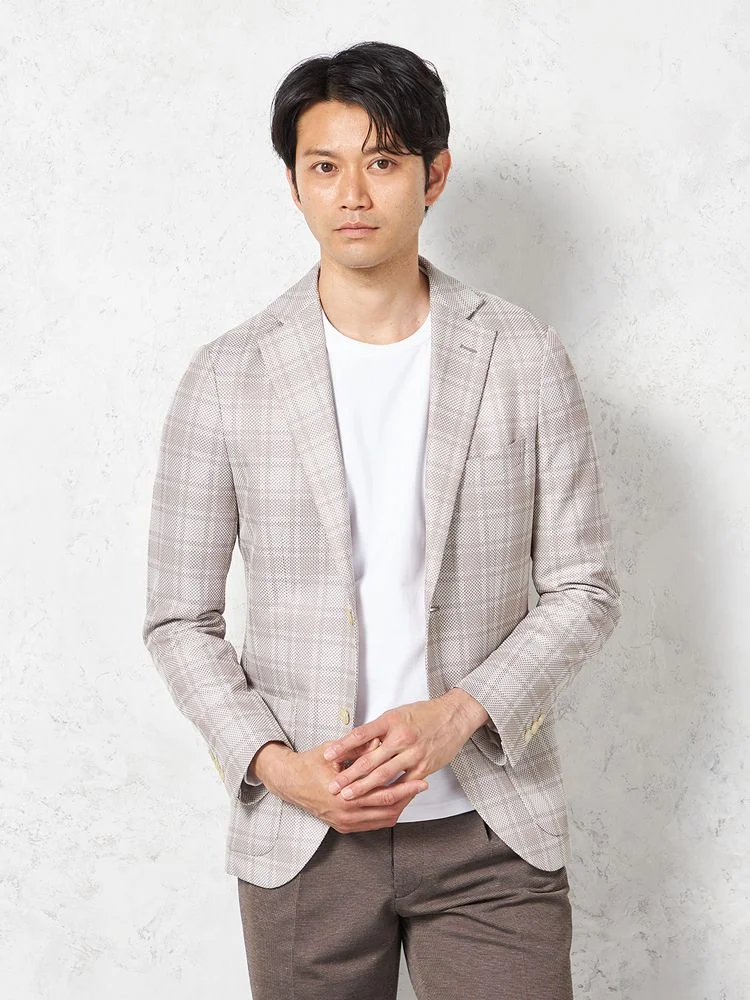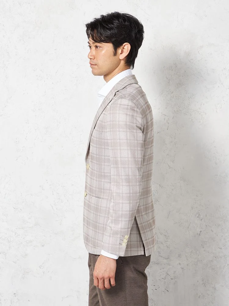 【ウォッシャブル】ジャケット 2つボタン【i-Jacket-アイジャケット-】ストレッチ 軽量 イタリアンチェック柄 ベージュ 春夏