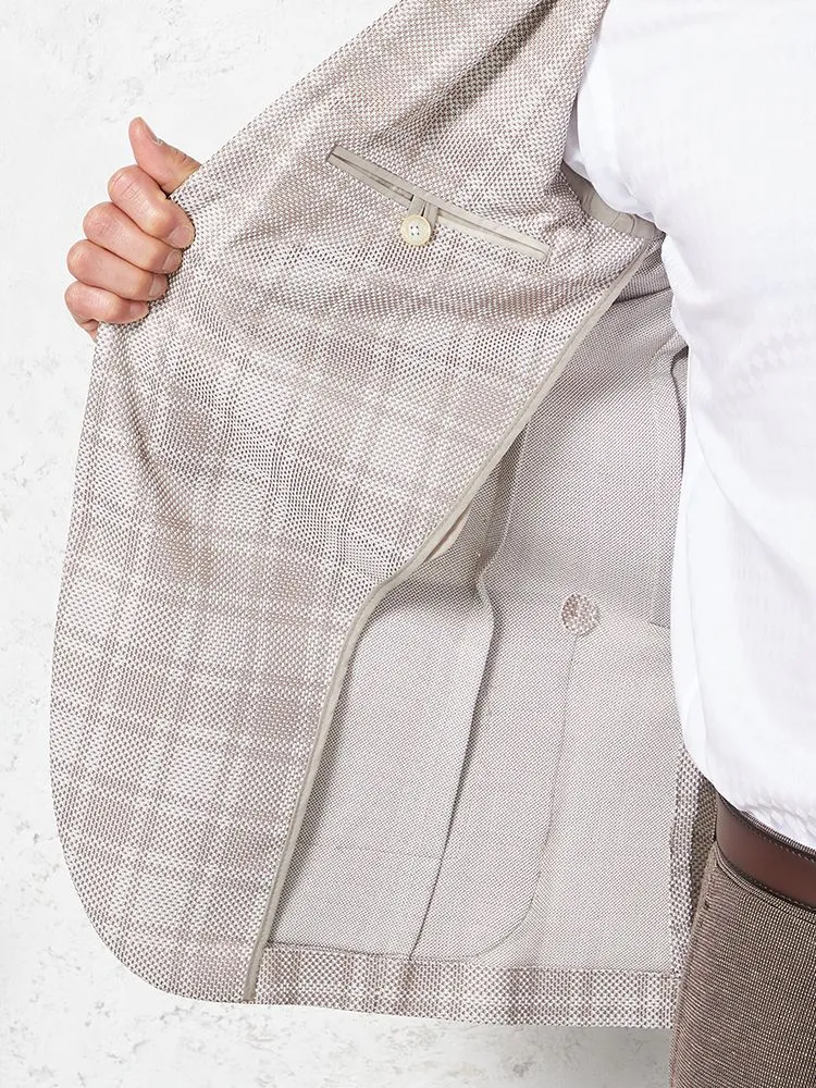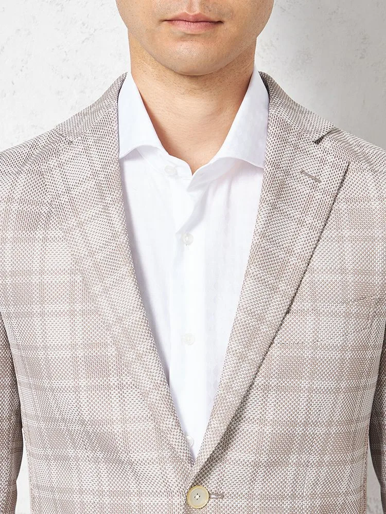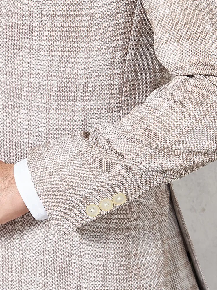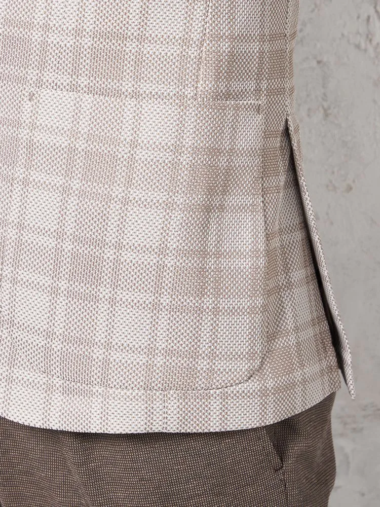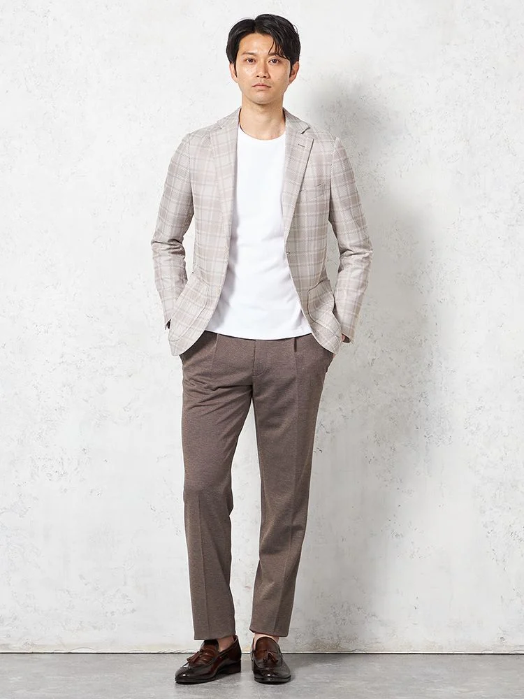 【ウォッシャブル】ジャケット 2つボタン【i-Jacket-アイジャケット-】ストレッチ 軽量 イタリアンチェック柄 ベージュ 春夏