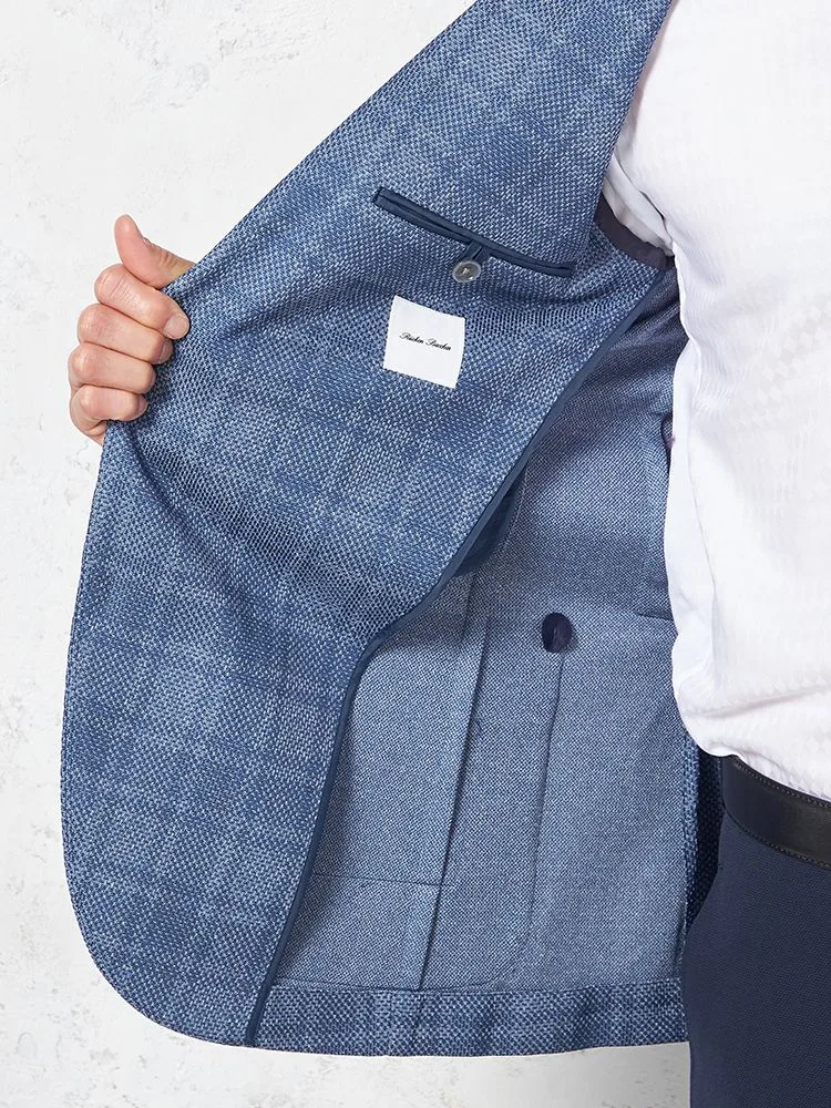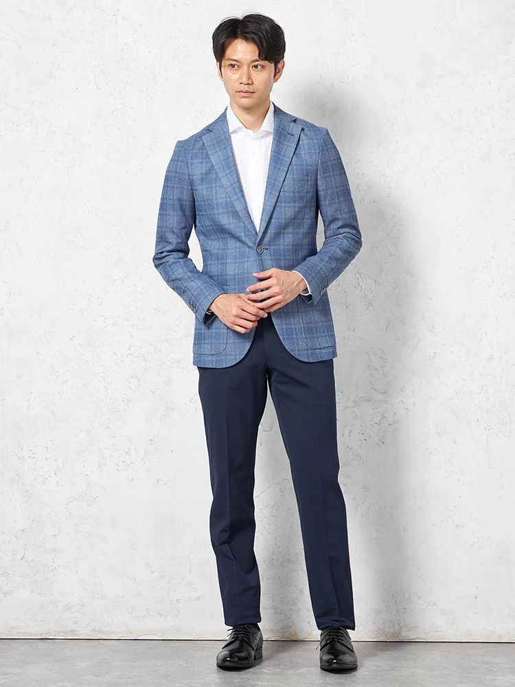 【ウォッシャブル】ジャケット2つボタン【i-Jacket-アイジャケット-】ストレッチ軽量イタリアンチェック柄ネイビー春夏