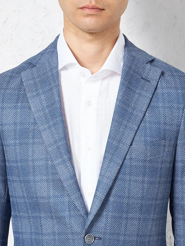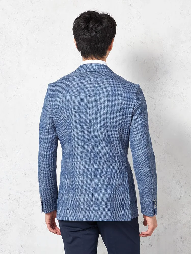 ブルー地のチェック柄が爽やかな、メッシュニット素材のジャケットです。