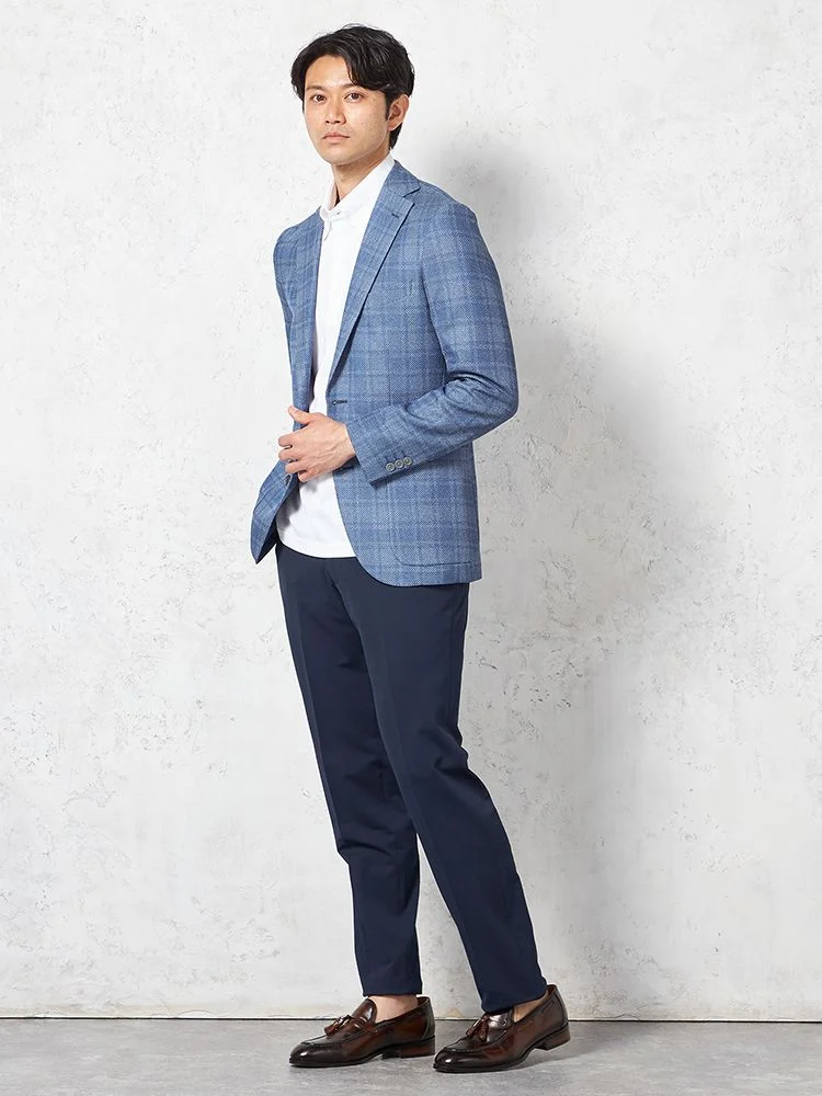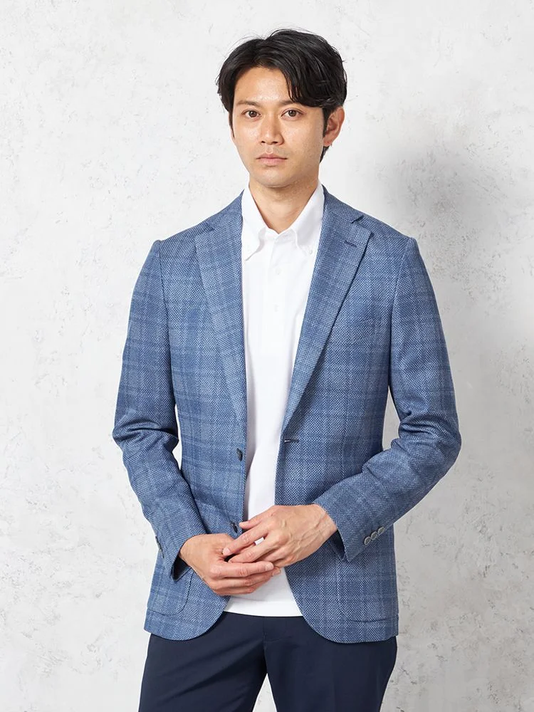 【ウォッシャブル】ジャケット 2つボタン【i-Jacket-アイジャケット-】ストレッチ 軽量 イタリアンチェック柄 春夏