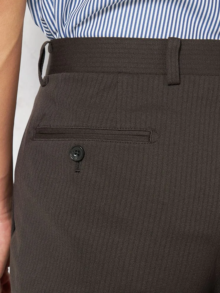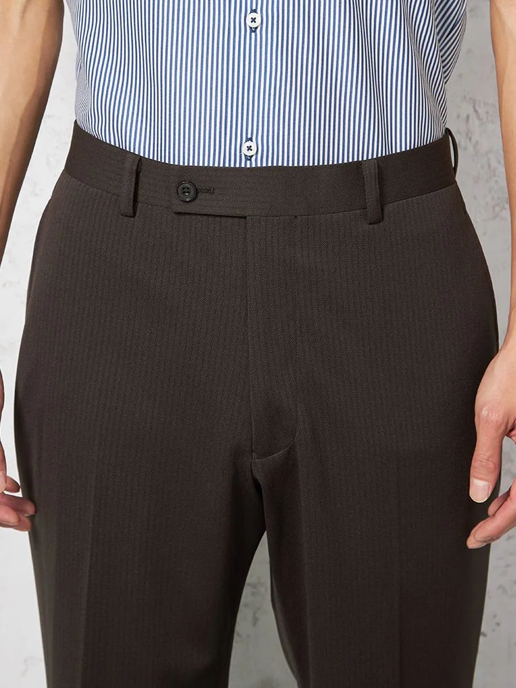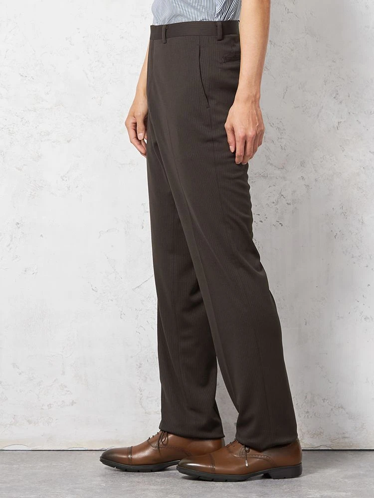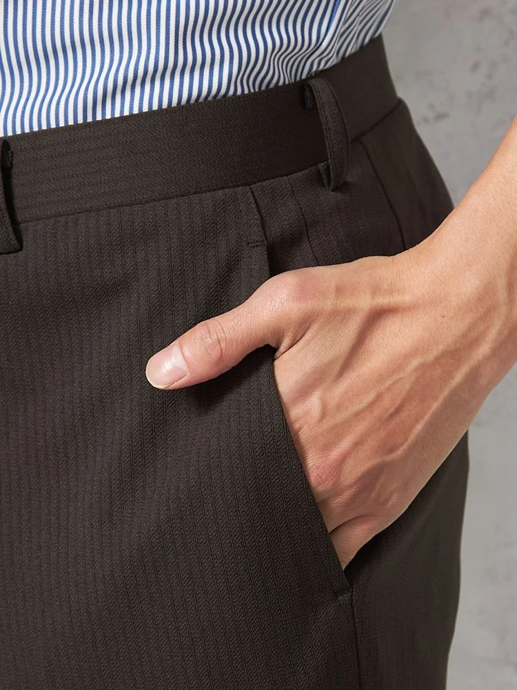 【ウォッシャブル】パンツ スラックス ノータック 【i-Pants-アイパンツ-】ストレッチ 速乾 ストライプ リッケンバッカー(D.ブラウン)
