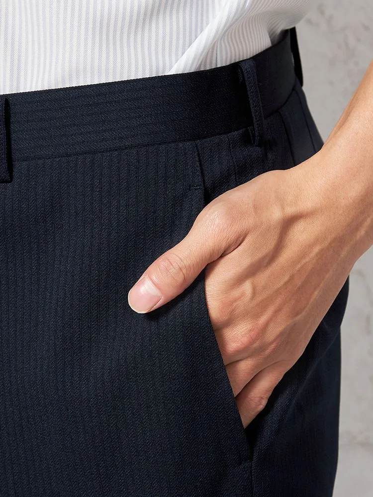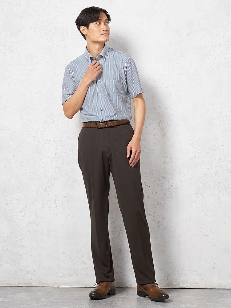 • D.ブラウン 【ウォッシャブル】パンツ スラックス ノータック 【i-Pants-アイパンツ-】ストレッチ 速乾 ストライプ リッケンバッカー 春夏 1337410240