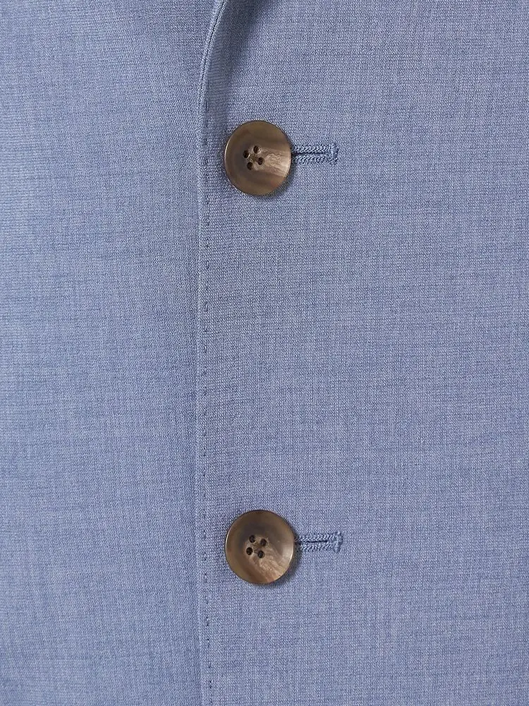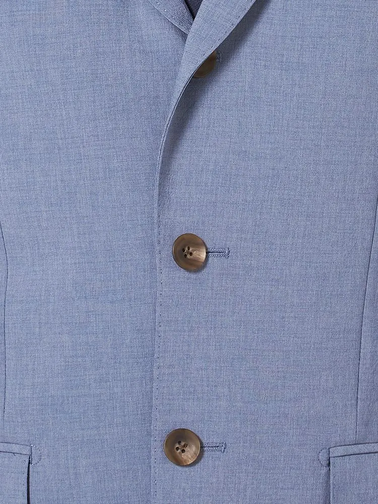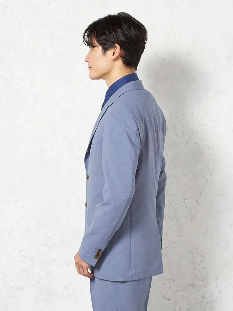【パンツウォッシャブル】スーツ 段返り3つボタン リネンライク ライトフィール ドライタッチ 軽量 ブルー リッケンバッカー 春夏