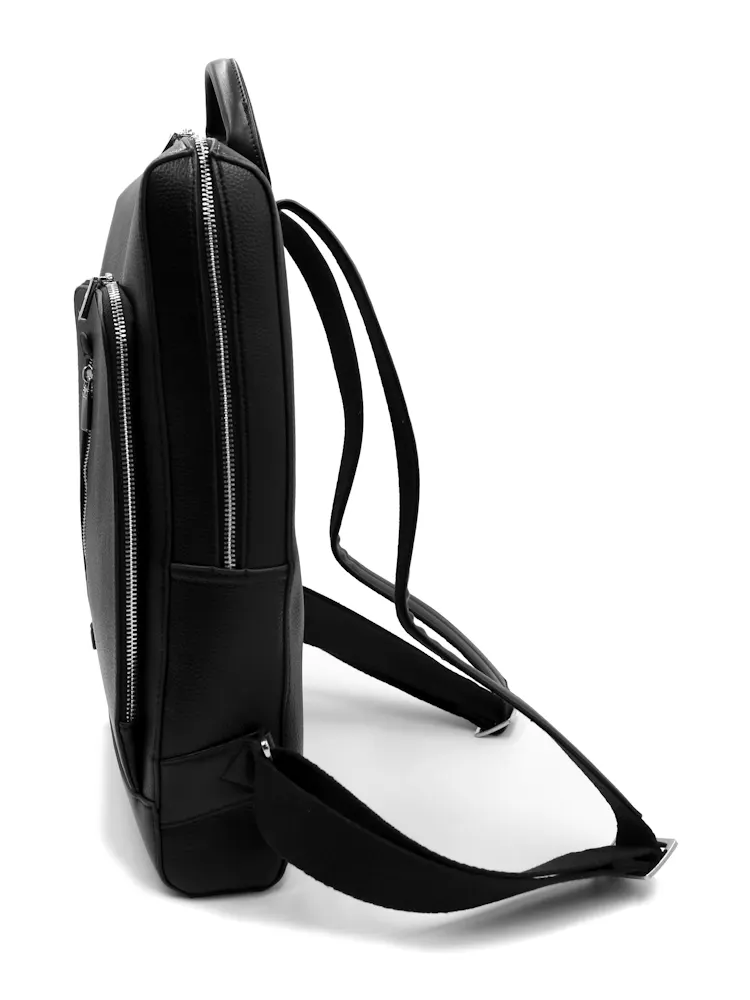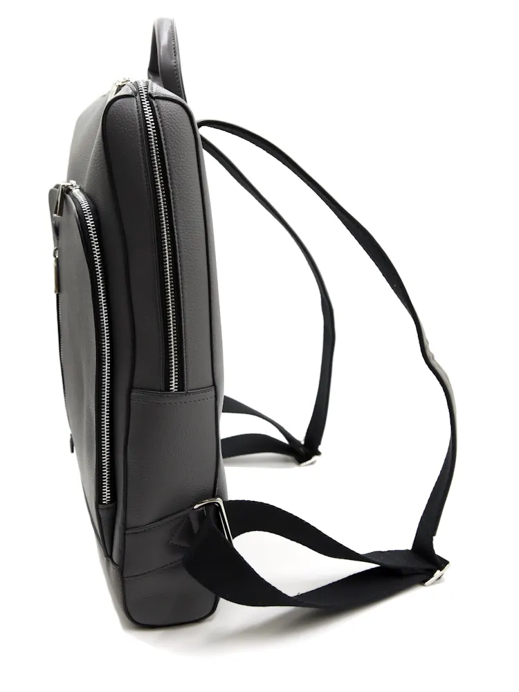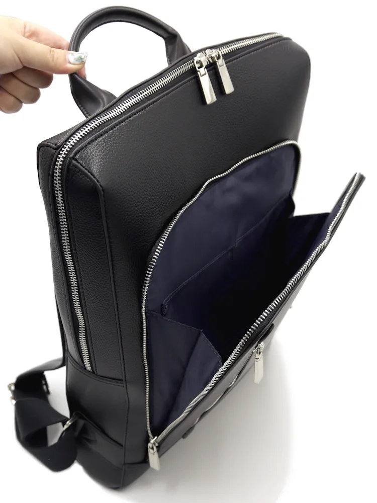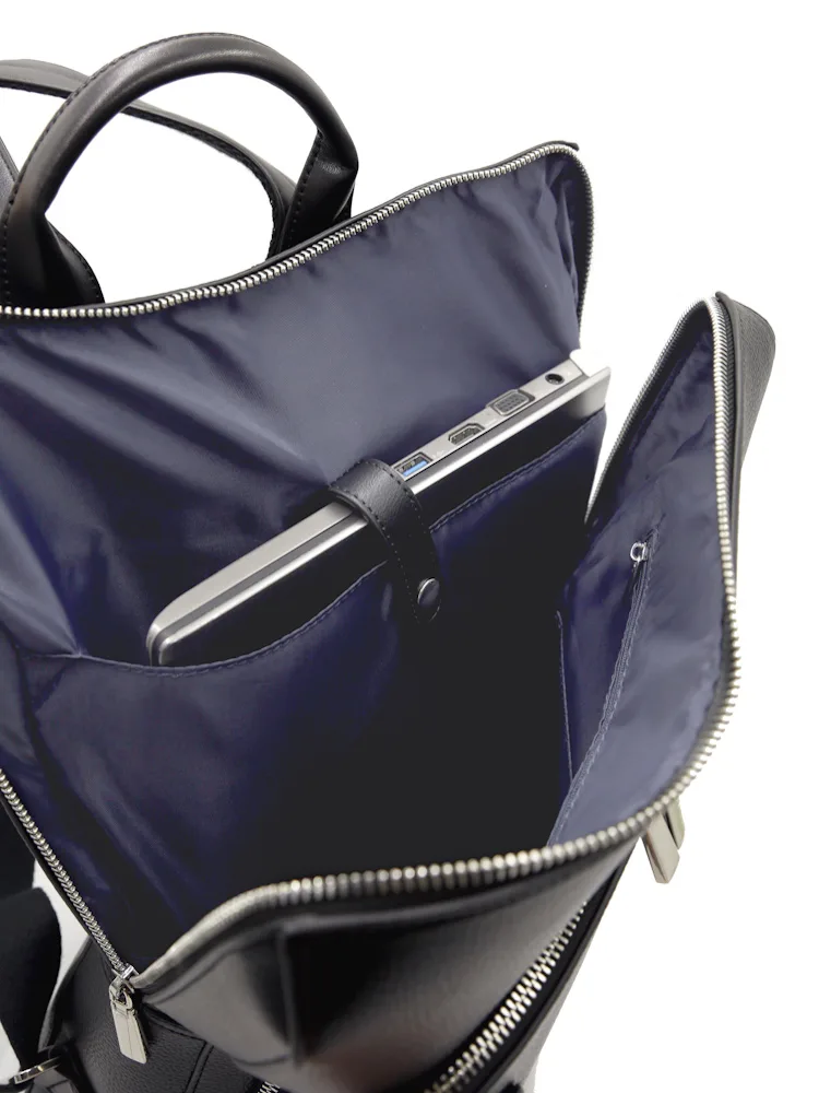 本体素材に本革のようなソフトなシュリンクの合成皮革を使用。スタイリッシュな薄めのビジカジリュックです。