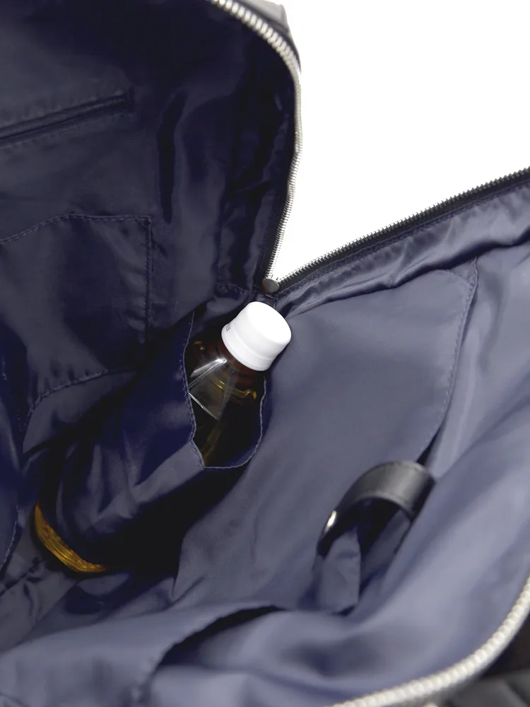 バッグ内部には、ペットボトルや折り畳み傘が収納できるホルダー付き。