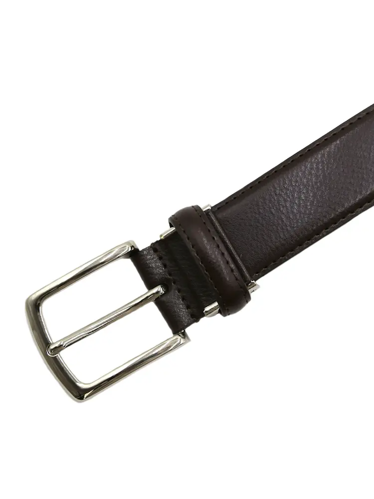 【牛革】メンズベルト ビジネス 35mm幅 丸型美錠 シュリンク リッケンバッカー 通年(D.ブラウン)