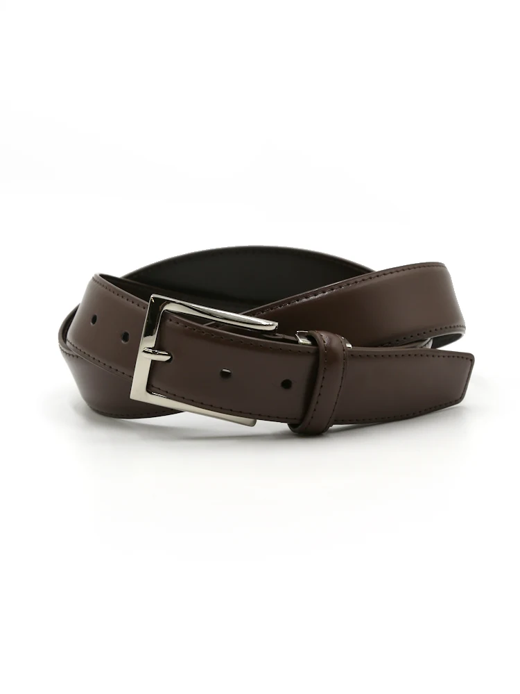 【牛革】メンズベルト ビジネス 35mm幅 角型美錠 スムース リッケンバッカー 通年(D.ブラウン)