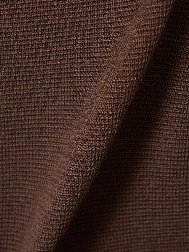 ニット素材ながら、しっかりとした素材感とボタンディテールでエレガントな印象を引き立てます。
