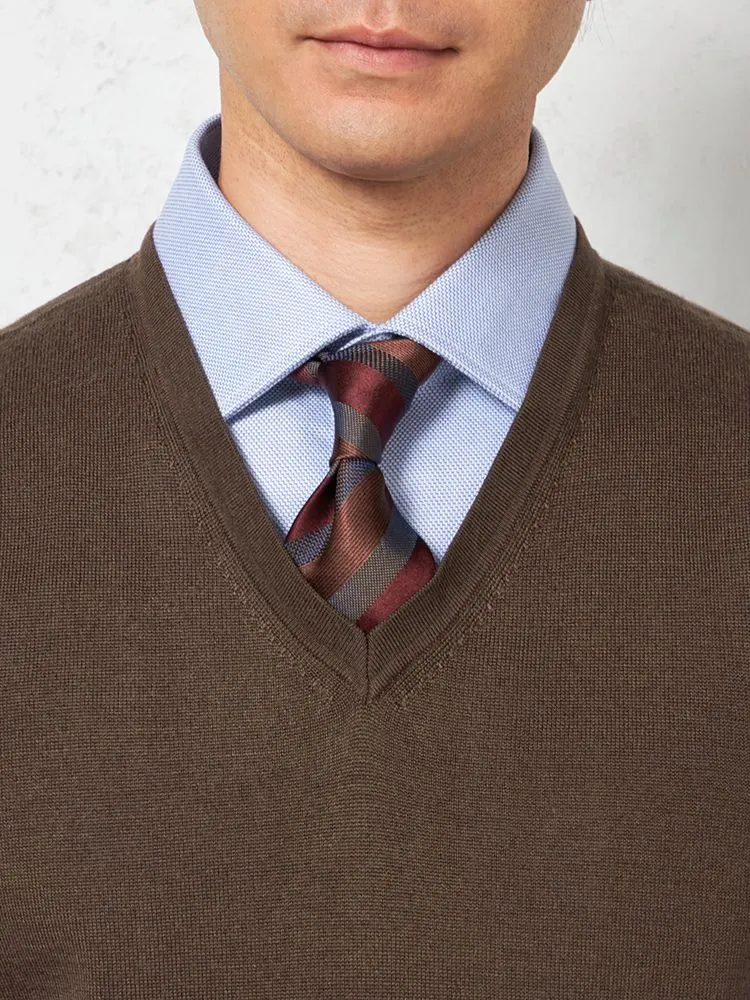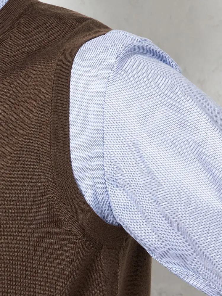 ネックの開きが絶妙で、ネクタイとのバランスも美しく仕上がります。